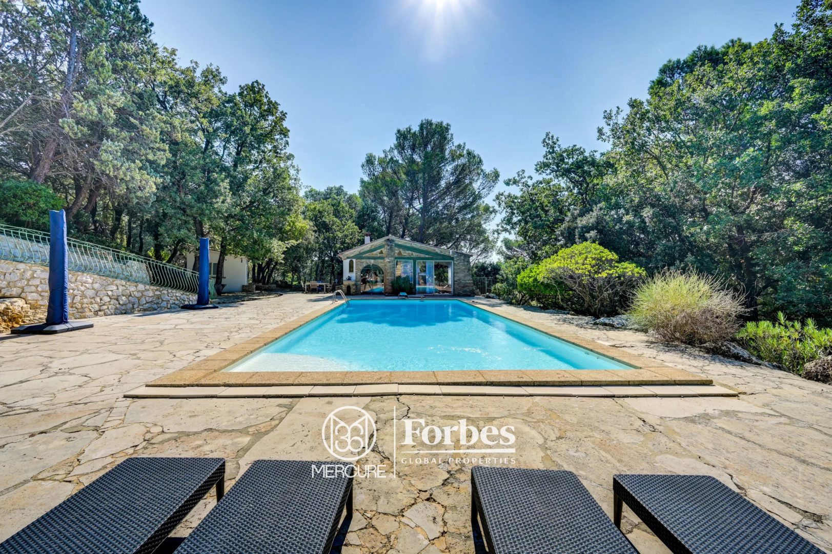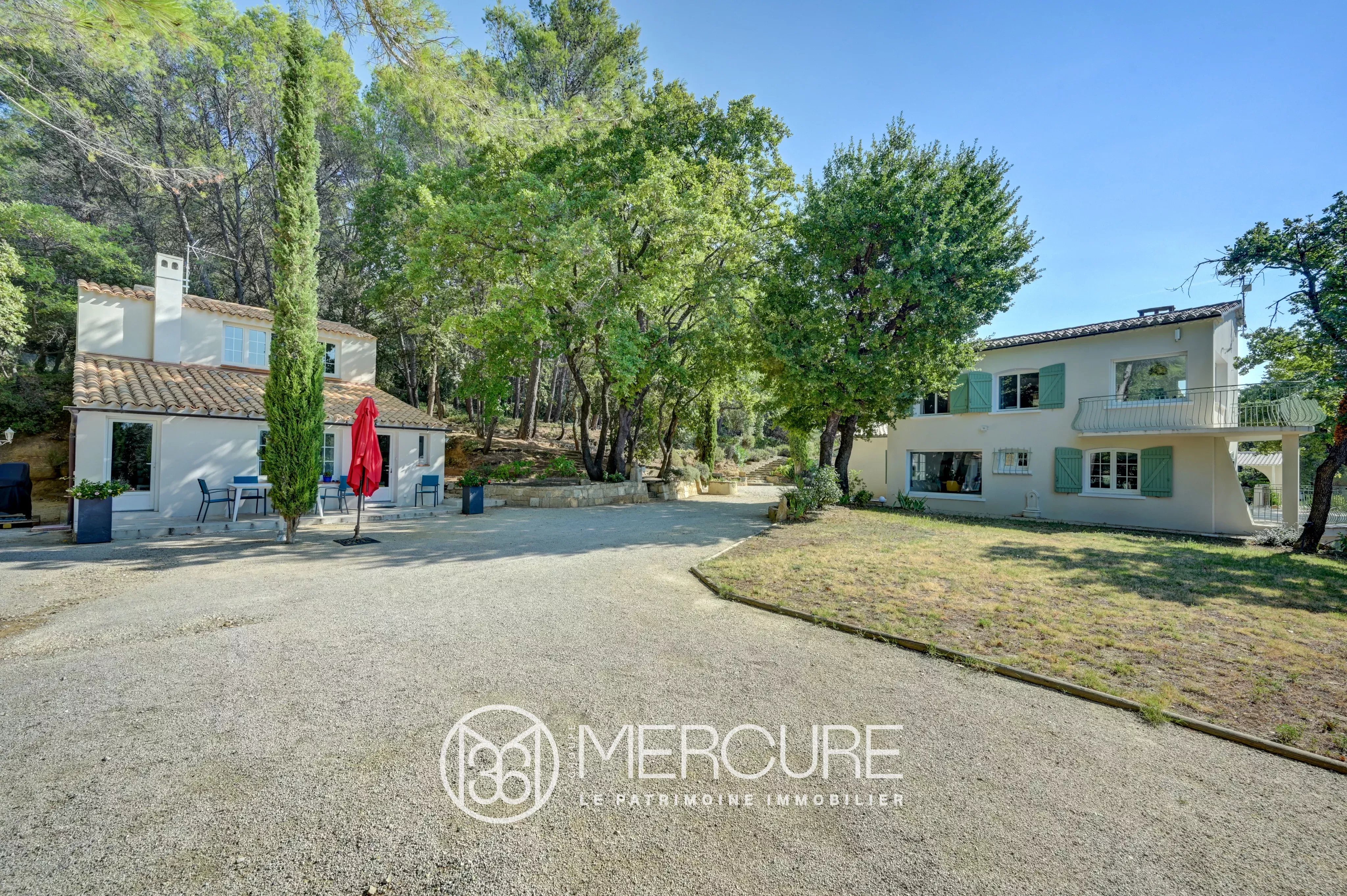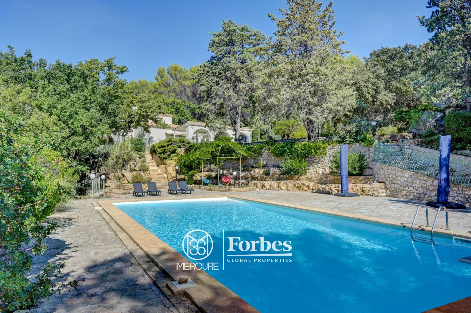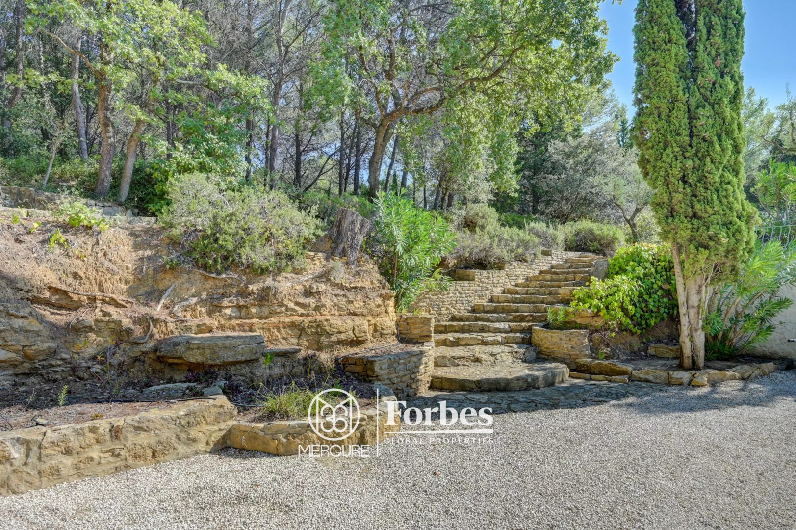 Entièrement rénovée et méticuleusement entretenue (ravalement effectué en 2023), cette propriété s’étend sur un magnifique parc arboré et paysagé en restanques, agrémenté de murs en pierre.