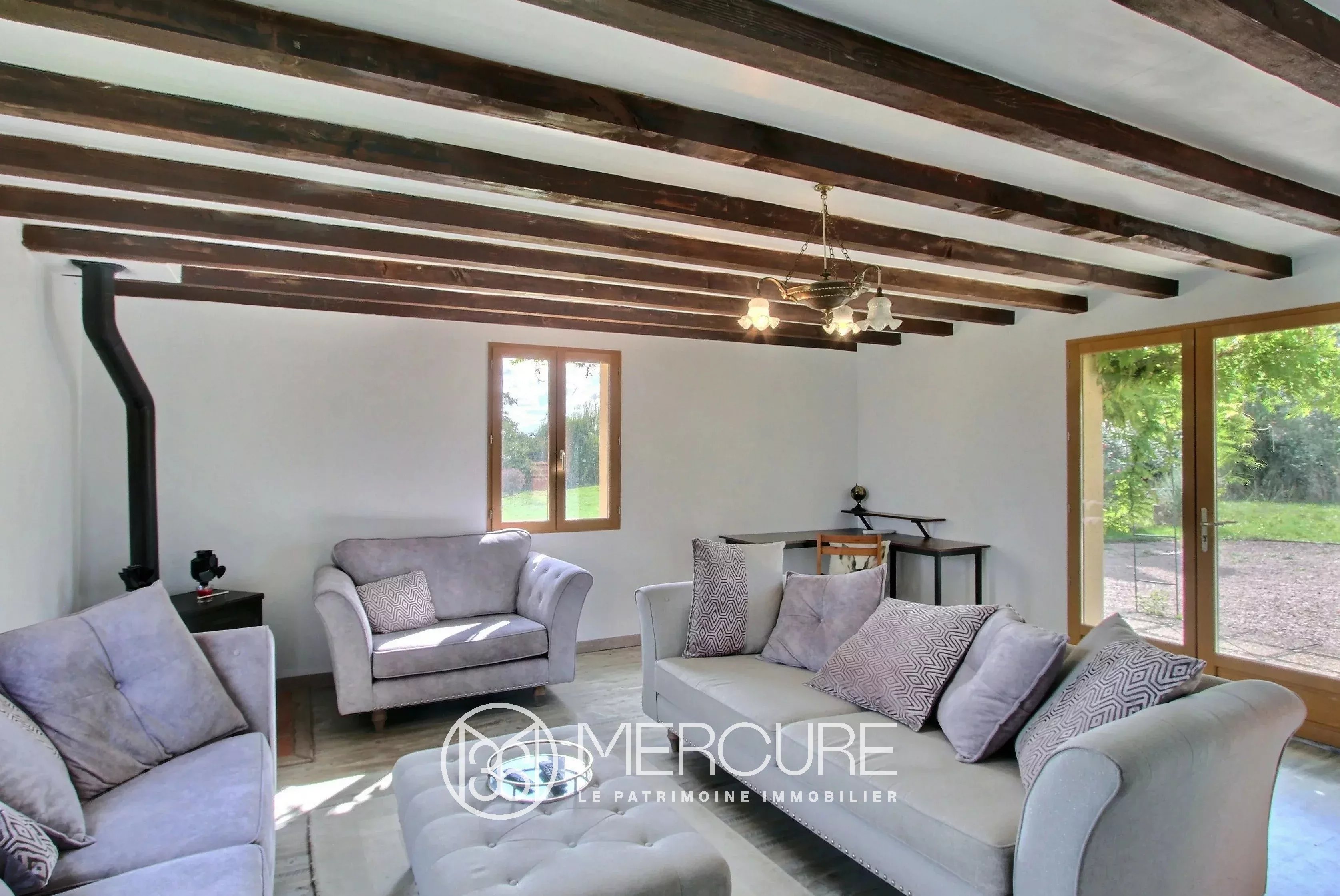 Propriété rurale rénovée avec gout, avec de beaux éléments d’architecture dont poutres et colombages. Sans nuisance, ni voisin directs.