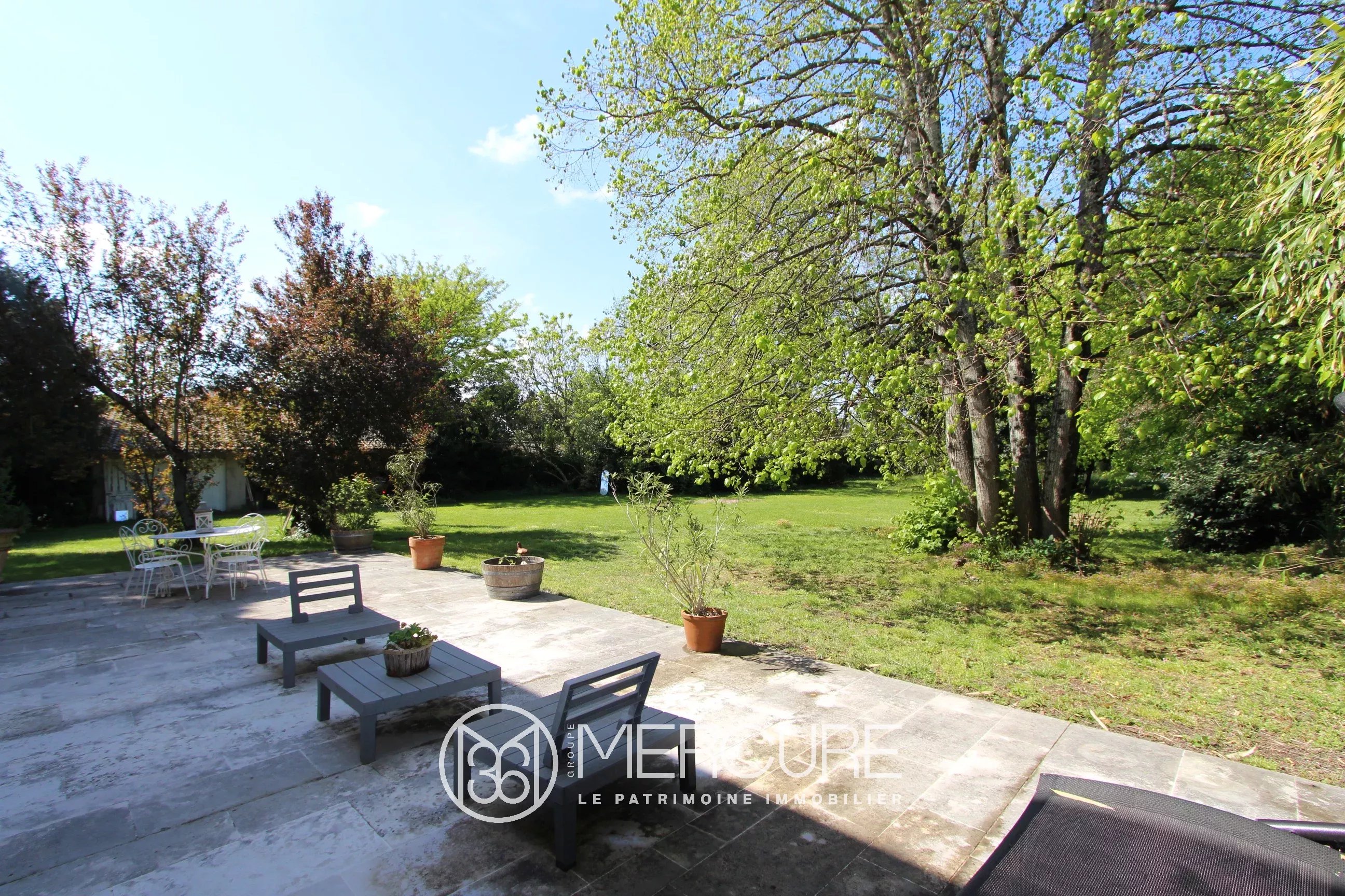 Une belle terrasse permet de jouir du jardin arboré de 3 000 m². Ce dernier, entièrement clôturé, comprend un puits et une dépendance composée d’un garage et auvent à deux places.