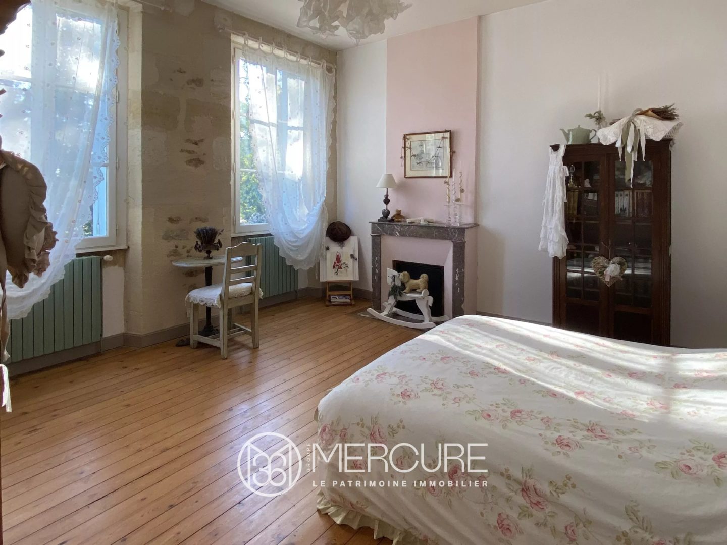 – Chambre 2 (16 m²) avec cheminée marbre