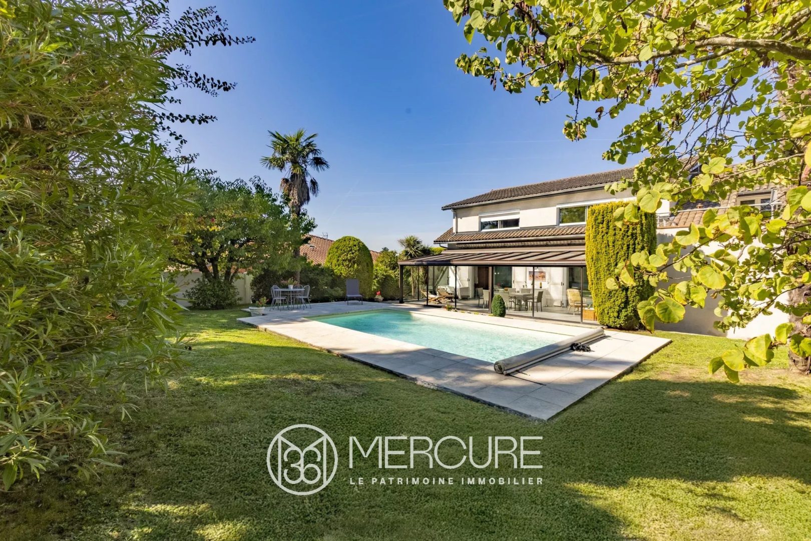 Le terrain, clos et paysagé, constitue un véritable écrin de verdure. Vous y découvrirez une piscine intimiste et sécurisée, sans aucun vis-à-vis, propice à la détente en toute sérénité.