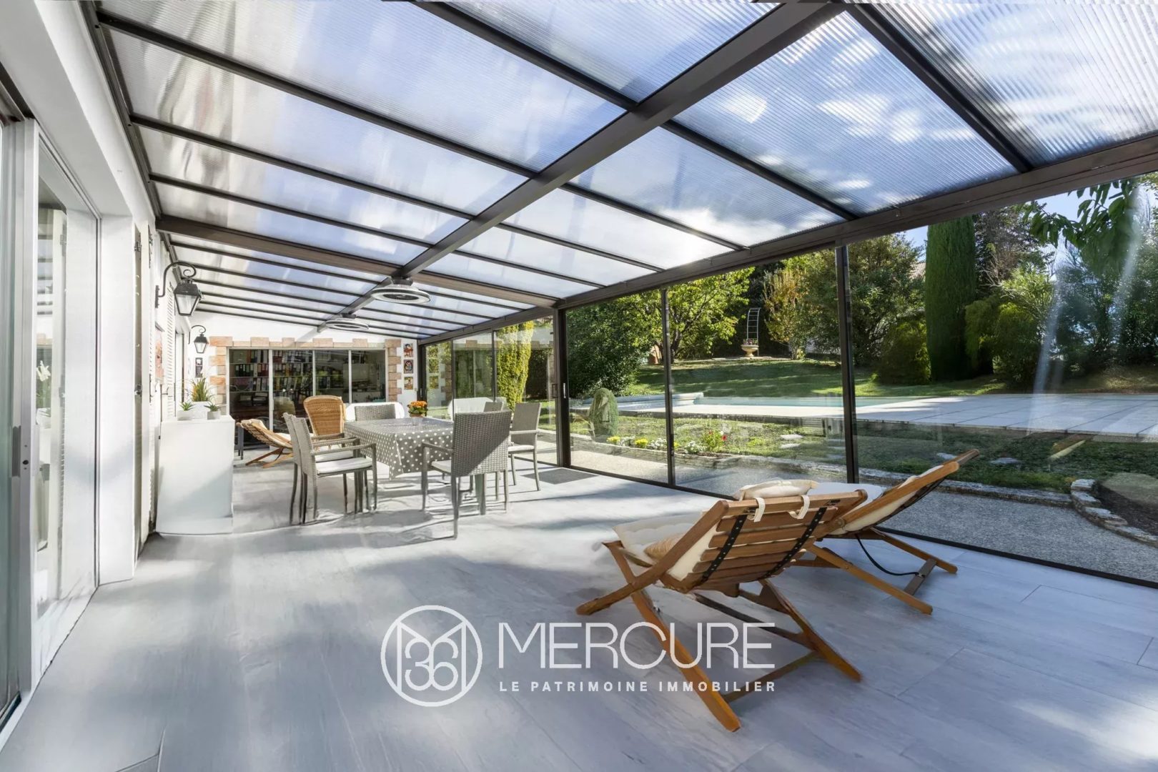 Dès l’entrée, le charme opère. Les volumes sont généreux, baignés de lumière grâce à une superbe véranda de près de 50 m², véritable pièce de vie à part entière. Orientée de façon optimale, elle offre non seulement un confort visuel exceptionnel, mais participe également au chauffage naturel de la maison en intersaison.