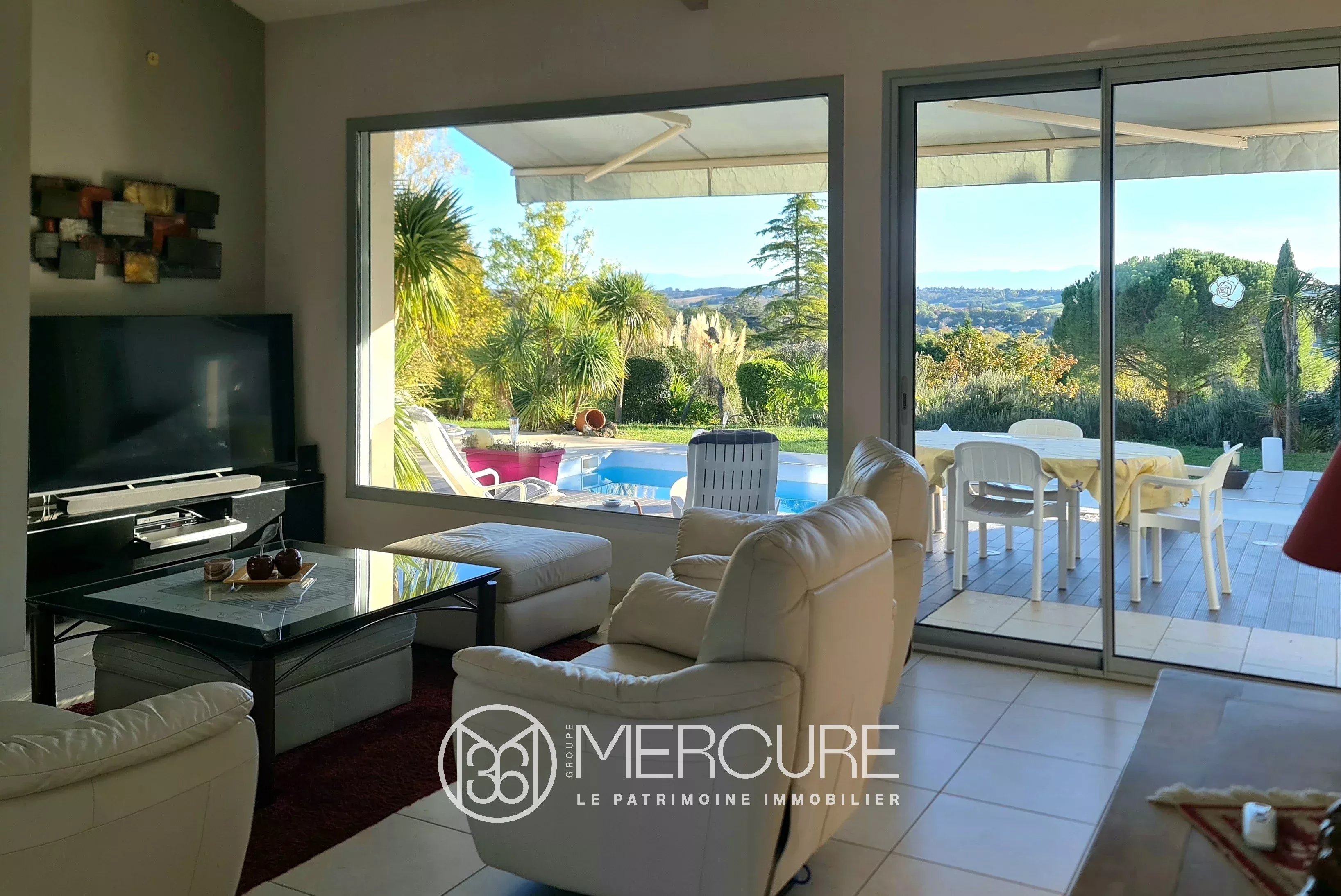 A 10 minutes du sud de Toulouse, cette propriété de charme s’ouvre sur la nature et offre une vue apaisante sur les Pyrénées. Dans un environnement calme et sans vis-à-vis, elle marie l’élégance de la campagne au confort contemporain.