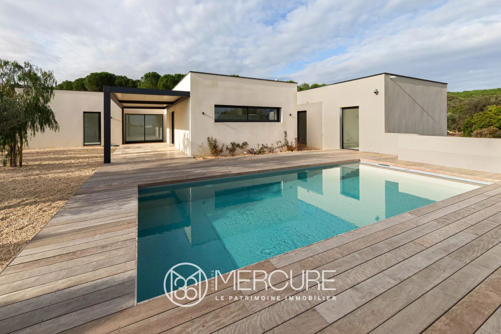 Les aménagements extérieurs sont tout simplement exceptionnels : végétation méditerranéenne mature protégeant de toutes nuisances, allées gravillonnées, murs en pierres, espace piscine en position dominante de plus de 100m² avec pergola bioclimatique.