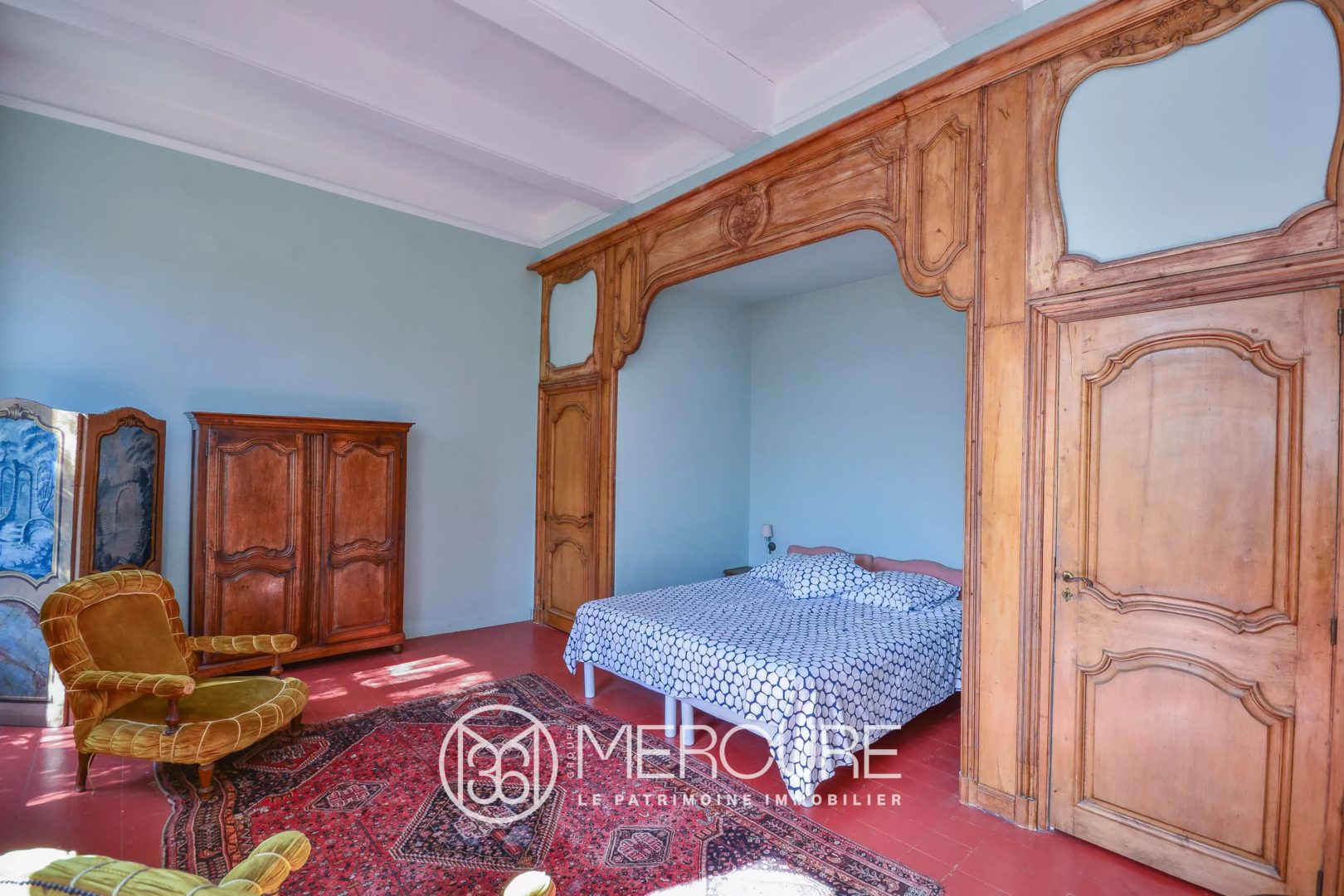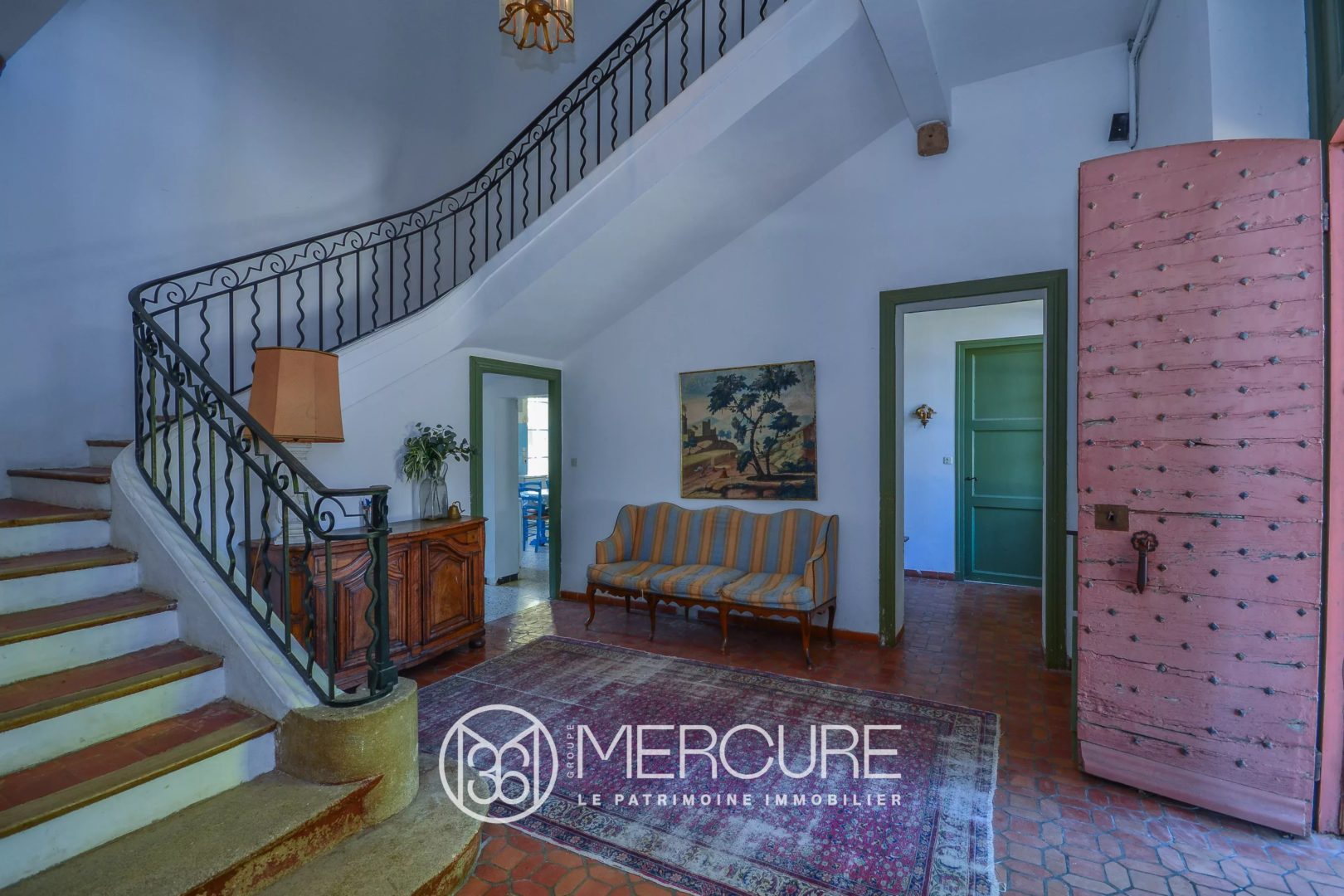 Eléments architecturaux et matériaux d’époque préservés : tomettes, bars, cheminées , boiseries, escalier (superbe rampe, tomettes et nez de marche en bois)