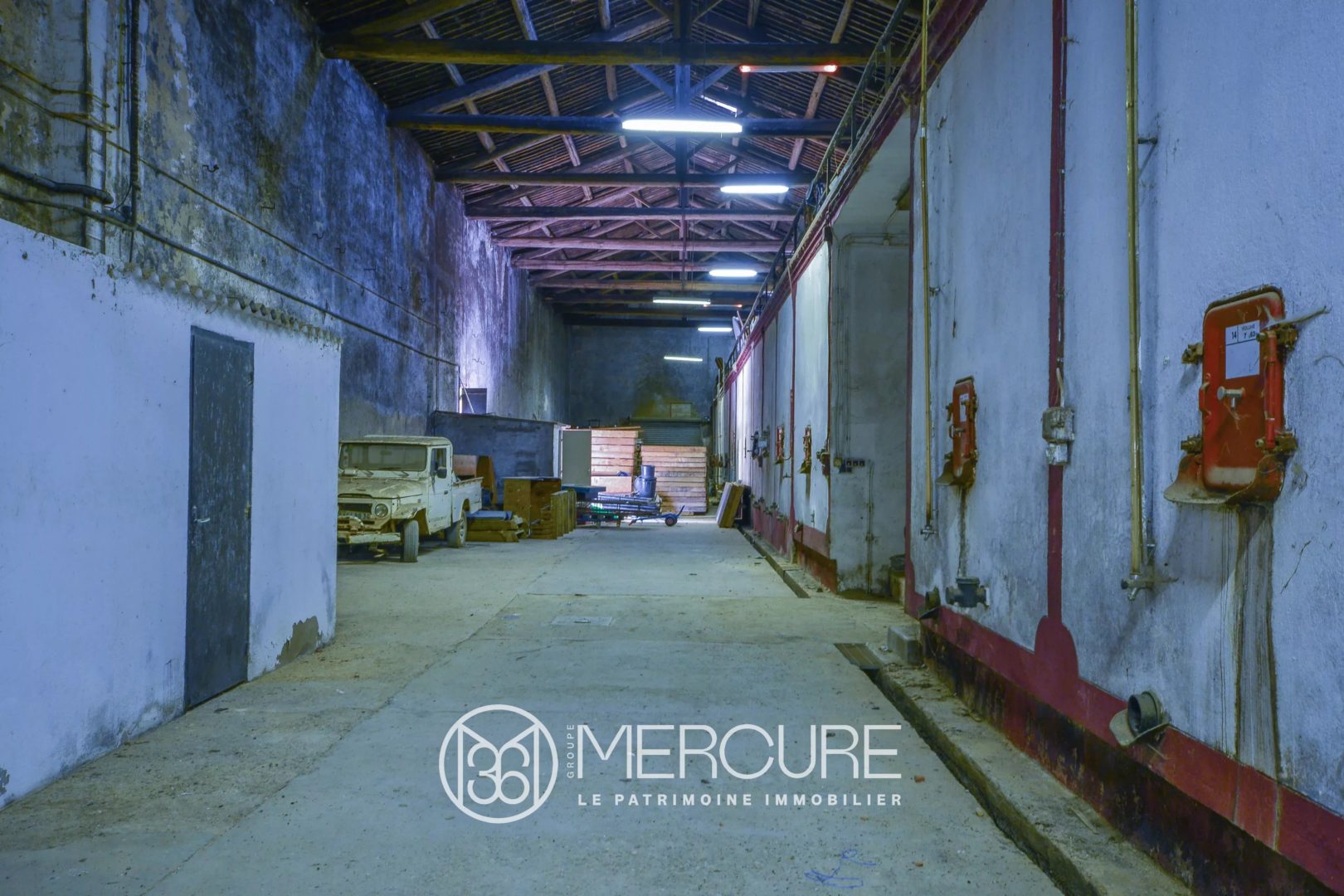 Ancienne cave de vinification environ 500m² (50 x 10 m) attenante à la maison sur l’arrière (façade Nord) très grande hauteur sous toiture.