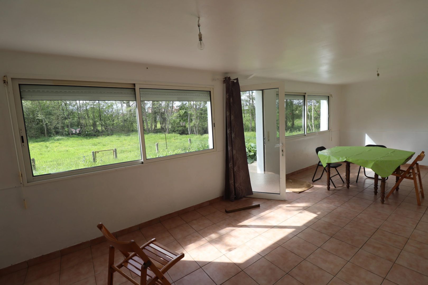 Au rez-de-chaussée, sol carrelage : entrée, chambre de 9 m², WC indépendant, cuisine de 16 m², véranda de 24 m², séjour de 27,50 m² avec conduit de cheminée,
