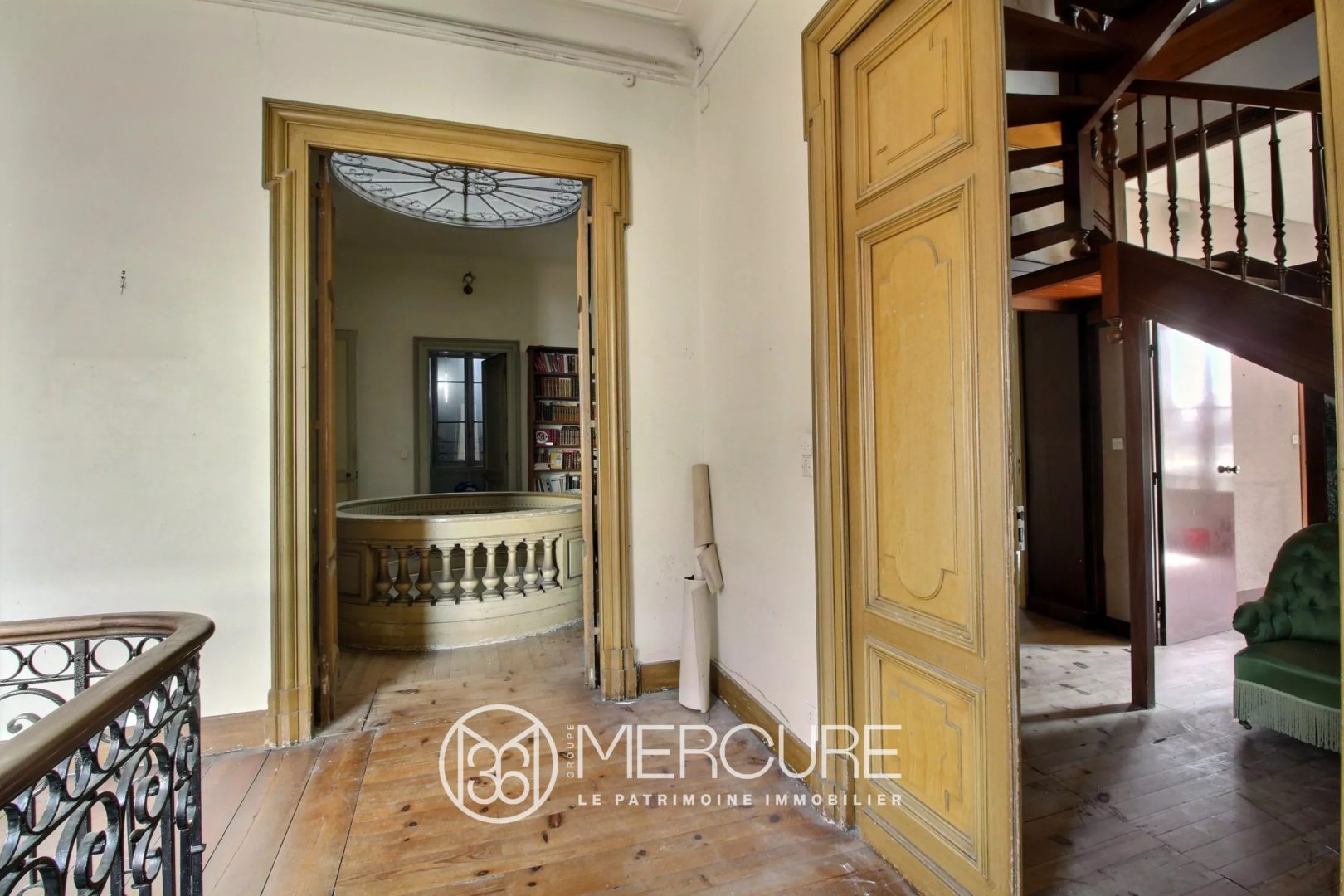 Généreux en hauteurs, l’étage dessert sept chambres, salles d’eau, un bureau et une grande salle d’architecte. Pour redonner à cette belle demeure son charme d’antan, l’acquéreur devra prévoir des travaux de rénovations.