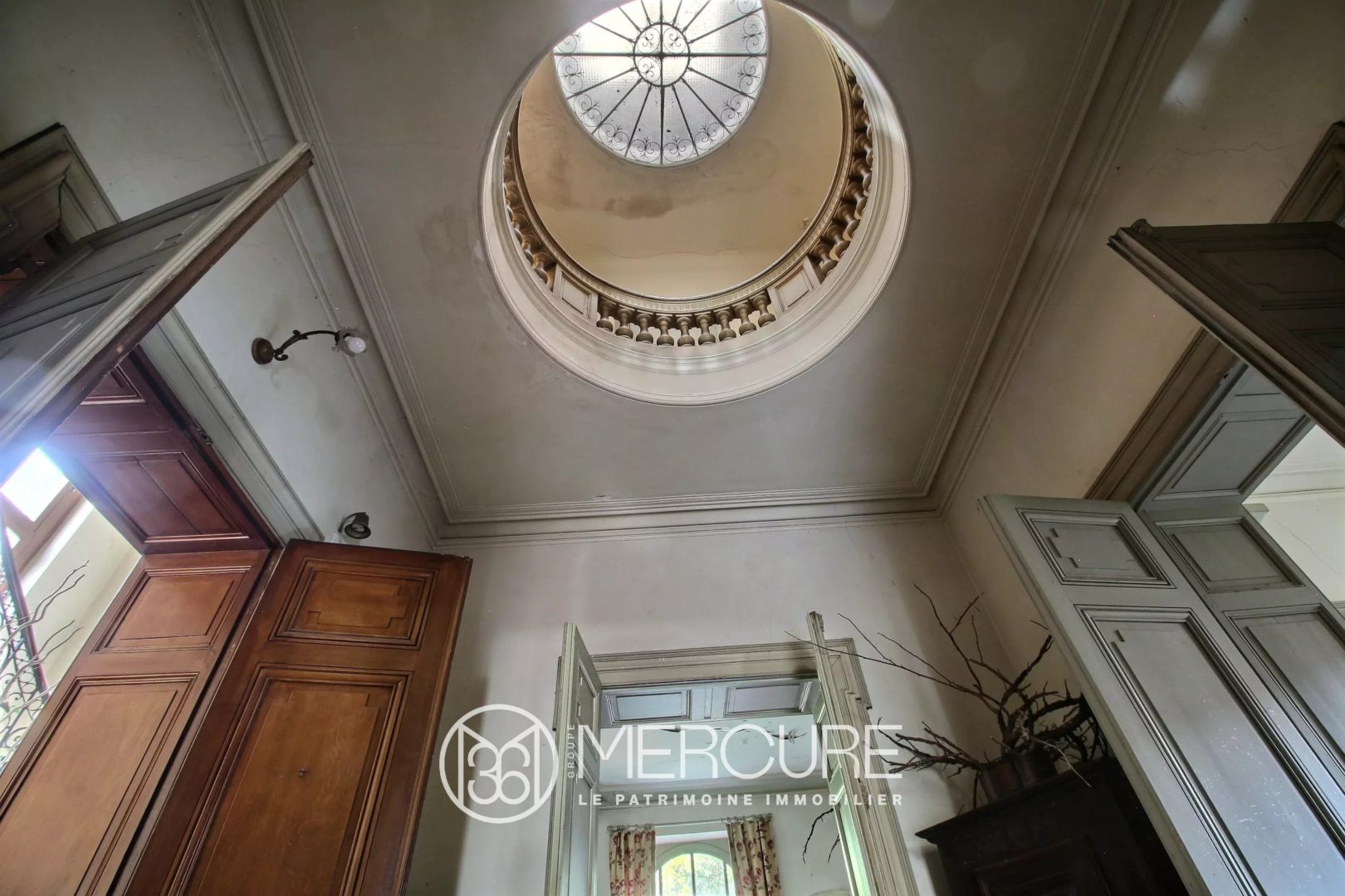 Au rez-de-chaussée, un spacieux vestibule est prolongé par un bel escalier au garde-corps en fer forgé délicatement ciselé. Salon de réception, salle à manger en enfilade et boudoir privé, sont agrémentées d’une verrière zénithale culminant à plus de dix mètres. Toutes ces pièces sont ornées de boiseries sculptées, corniches, cheminées en marbre, parquets en marqueterie. Cuisine et appartement intime.