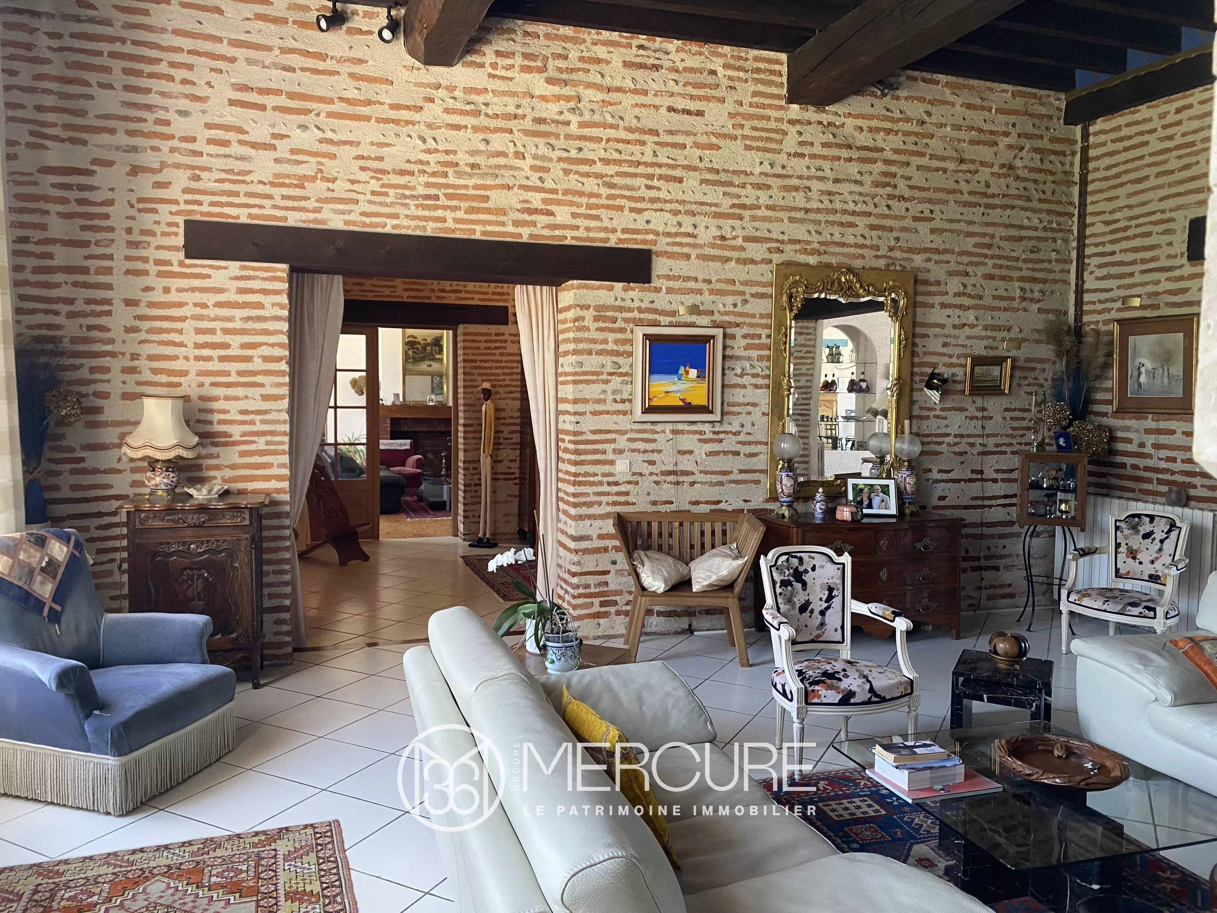 Au bord paisible de la Garonne, de l’autre coté de la digue, cette charmante demeure en pierre et briques de 350 m2, dont 250 m2 pour l’habitation, incarne l’élégance traditionnelle du Lot‑et‑Garonne. Implantée sur un parc clos de 5 249 m² agrémenté d’arbres ornementaux et fruitiers, elle offre un véritable havre de verdure, avec puits et protégé par une haie et un portail électrique.