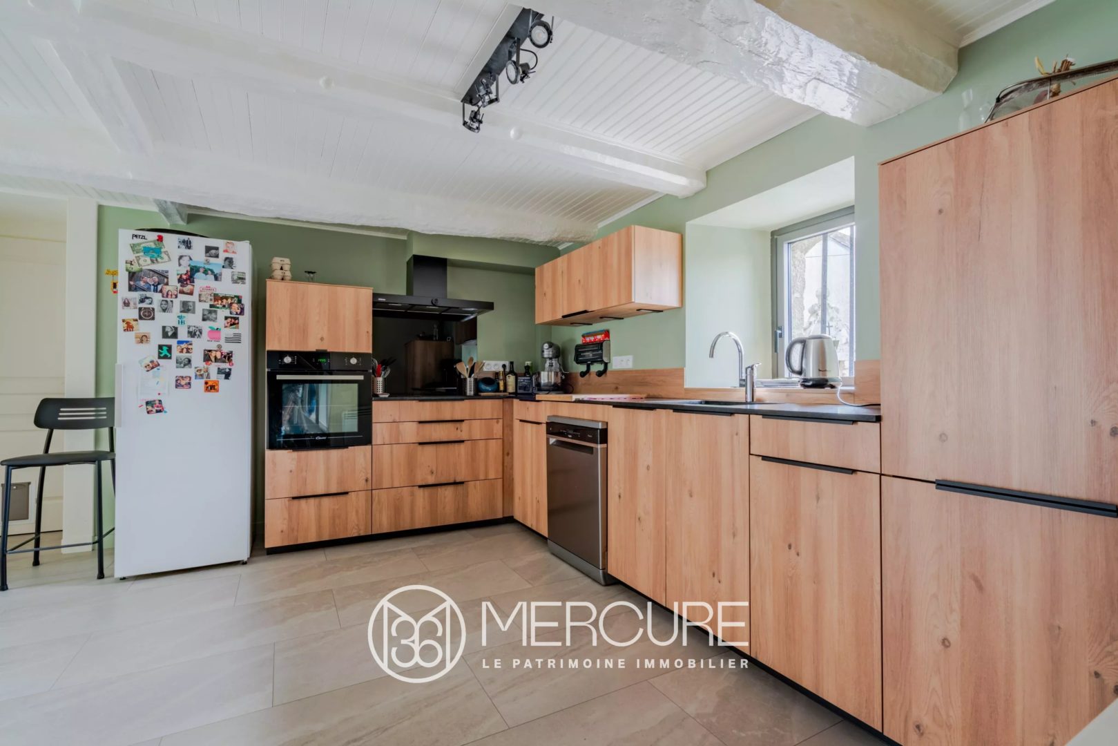 Le hall d’entrée accueillant dessert un rangement dressing et une cuisine moderne très fonctionnelle avec accès direct sur une grande terrasse dînatoire.