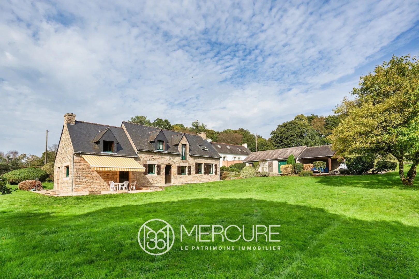 Charmant ensemble de longères en pierres situé dans un environnement naturel privilégié. Ce bien exceptionnel se trouve sur un terrain paysagé de 3 hectares, agrémenté de fruitiers et bordé par une rivière, à seulement 15 minutes du Faouët.