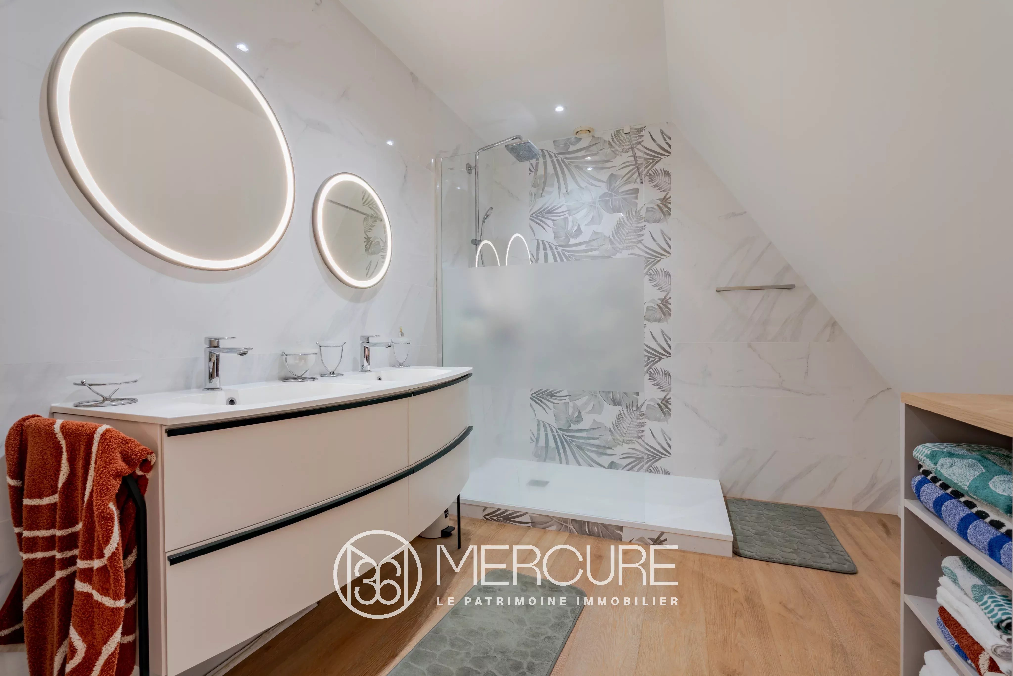 Ce niveau propose une chambre traversante et spacieuse avec salle d’eau attenante et douche italienne.