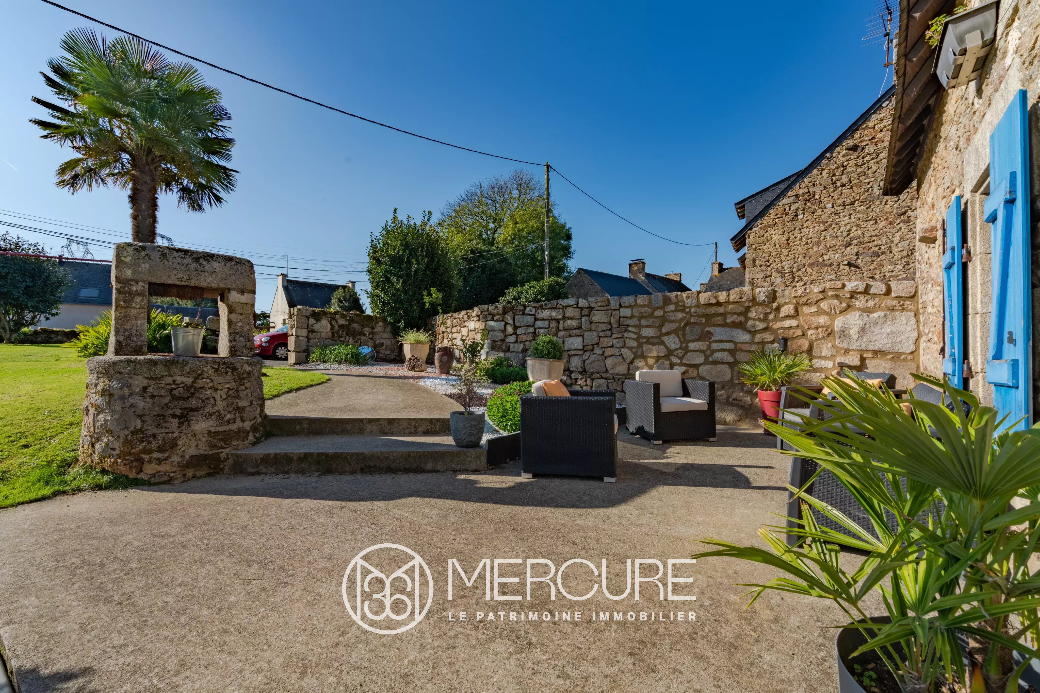 Le terrain bénéficie d’un puits et de deux terrasses sur chaque façade.