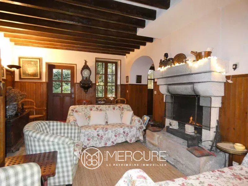Rez-de-jardin : belle cuisine à vivre, salle à manger avec tomettes anciennes et lambris, salon avec dallage pierre et cheminée, pièce aménageable en prolongement