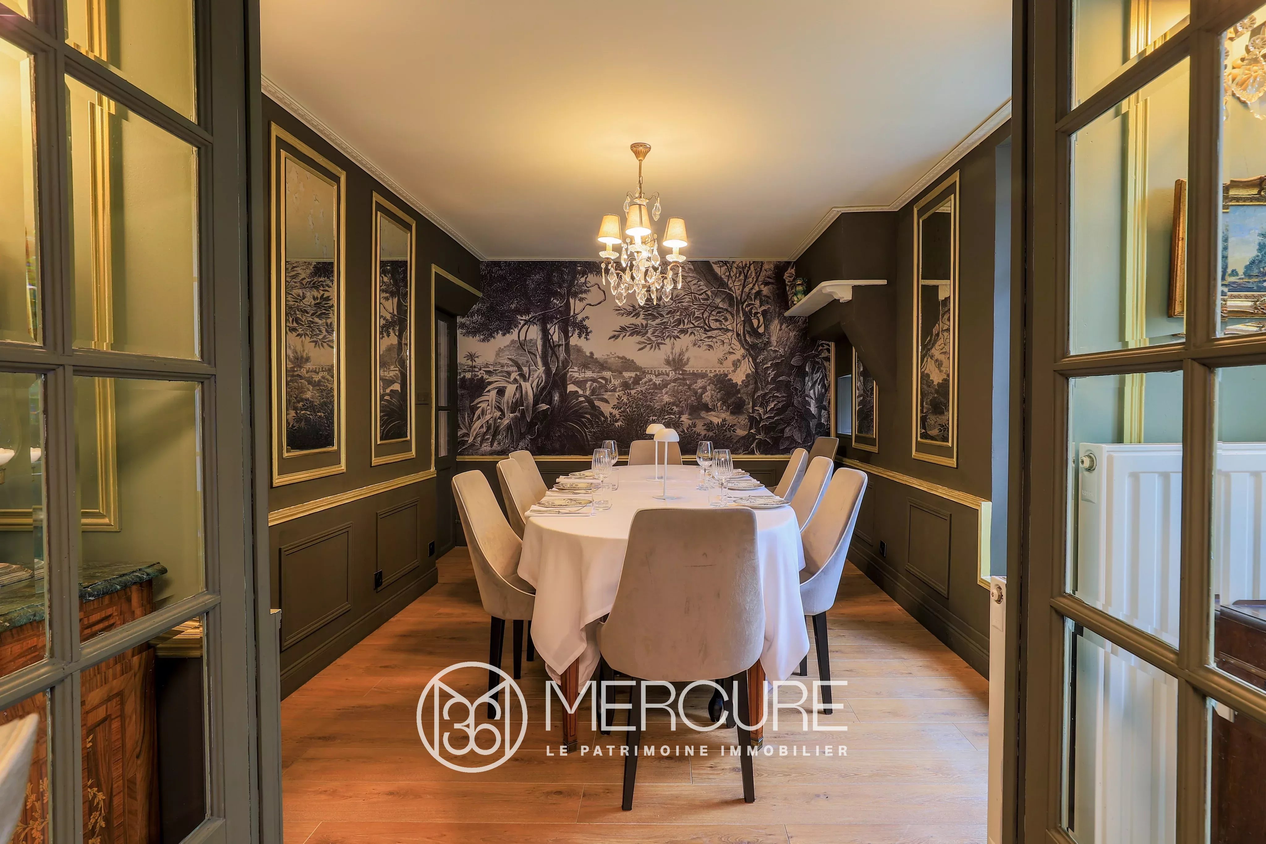 Elle se compose d’une entrée principale, de trois séjours spacieux joliment rénovés (34m², 35m² et 50m²), d’une salle à manger plus intimiste, idéale pour une ambiance feutrée, ainsi que d’un bureau et des sanitaires à deux entrées.