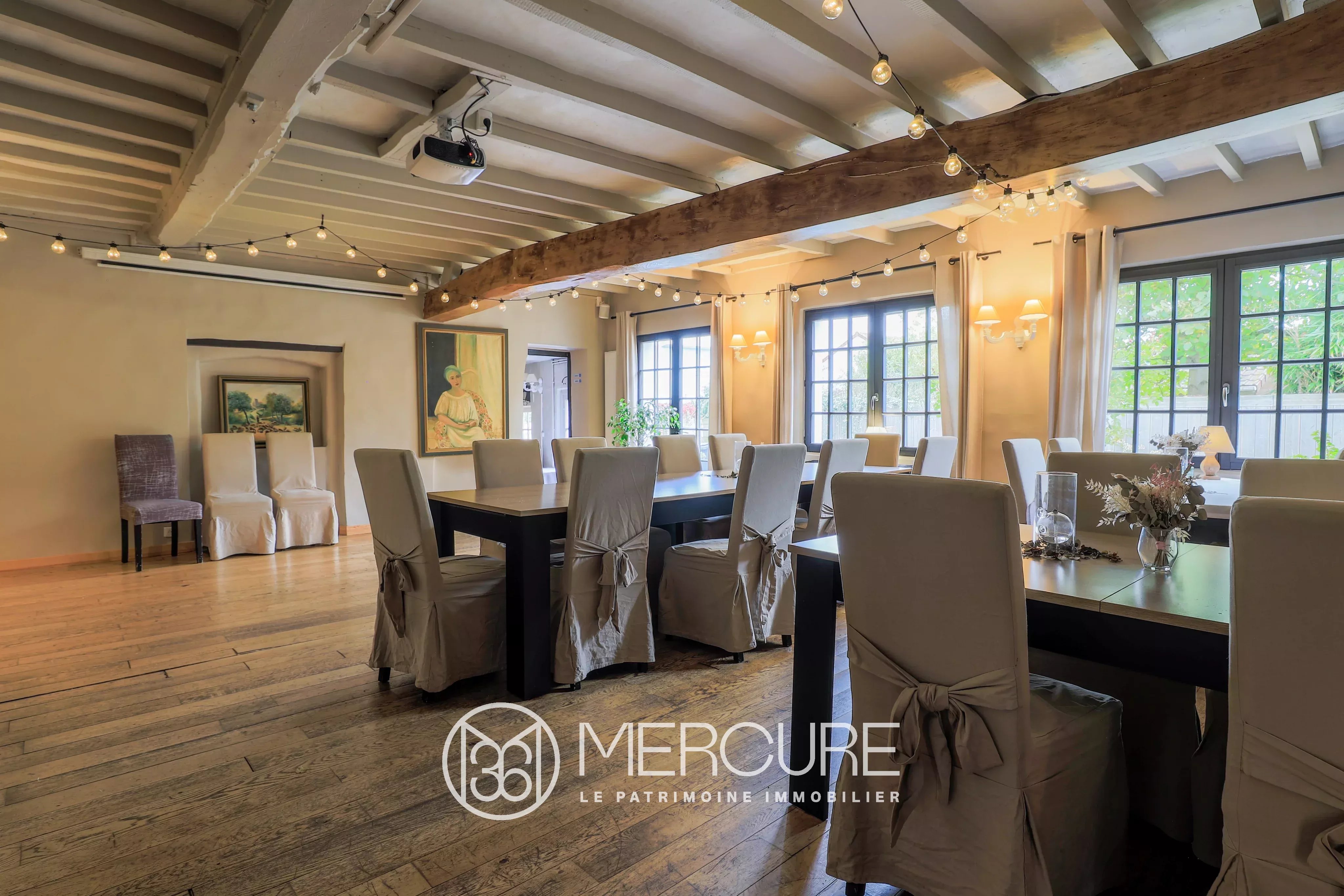 La cuisine professionnelle de 71m², à réaménager selon vos envies, offre un potentiel idéal pour créer une cuisine familiale spacieuse et fonctionnelle, ouverte sur le jardin.