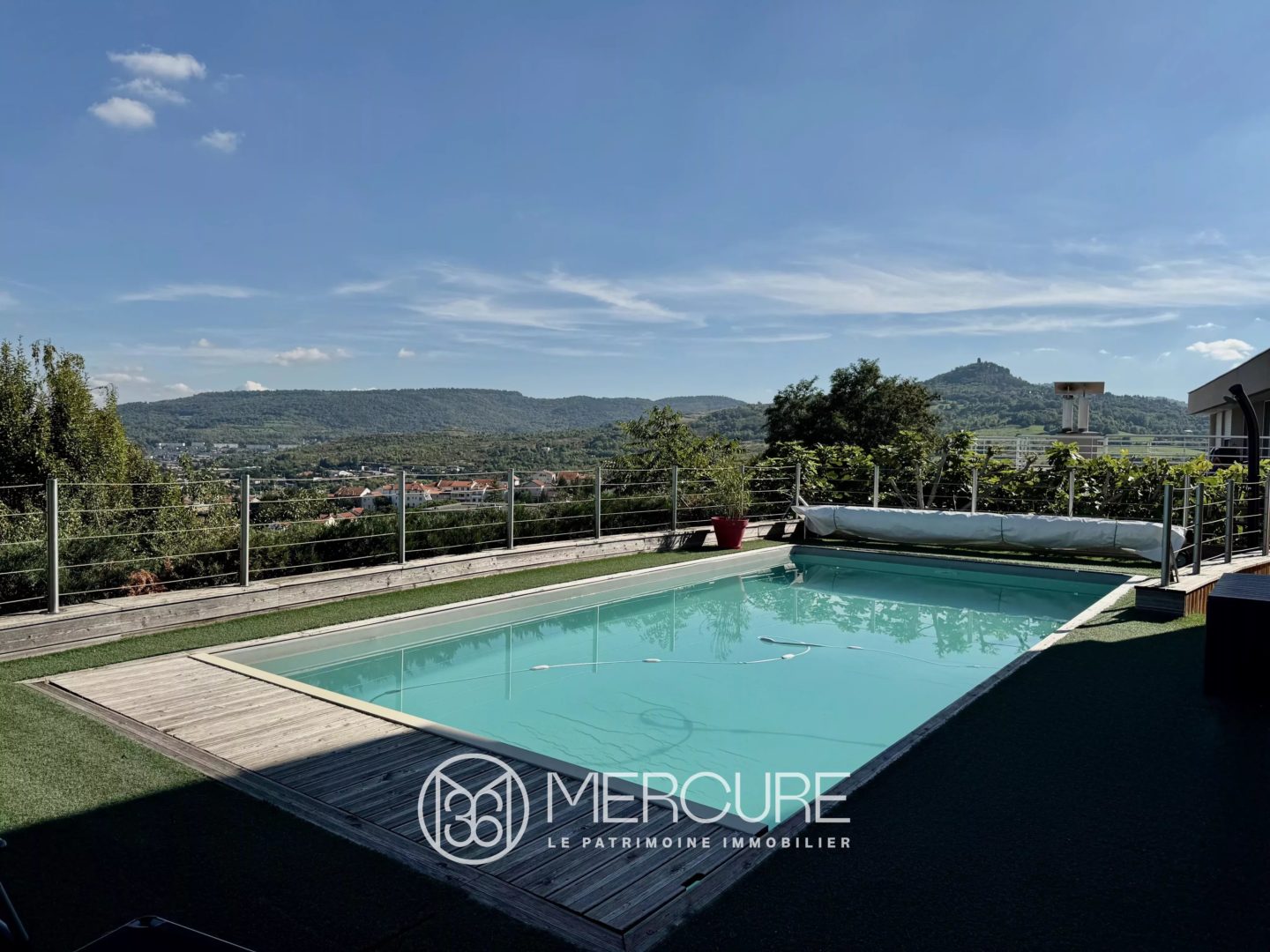 Située sur un terrain de 1 384 m², cette belle maison d’architecte d’environ 265m² habitables (300m2 au sol) offre un cadre de vie exceptionnel avec une vue dégagée à couper le souffle.