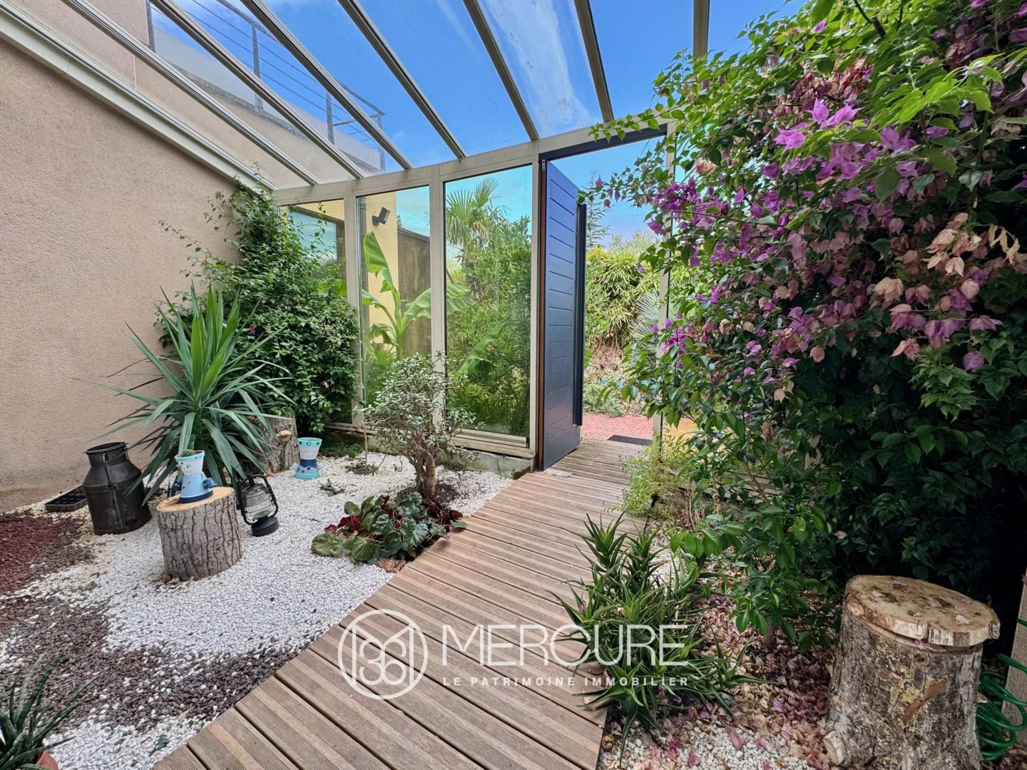 Les pièces de vie baignent de lumière grâce aux larges baies vitrées et s’ouvrent sur une vaste terrasse exposée sud-est, avec un espace barbecue et une piscine chauffée (nage à contre-courant), sécurisée par un volet roulant.