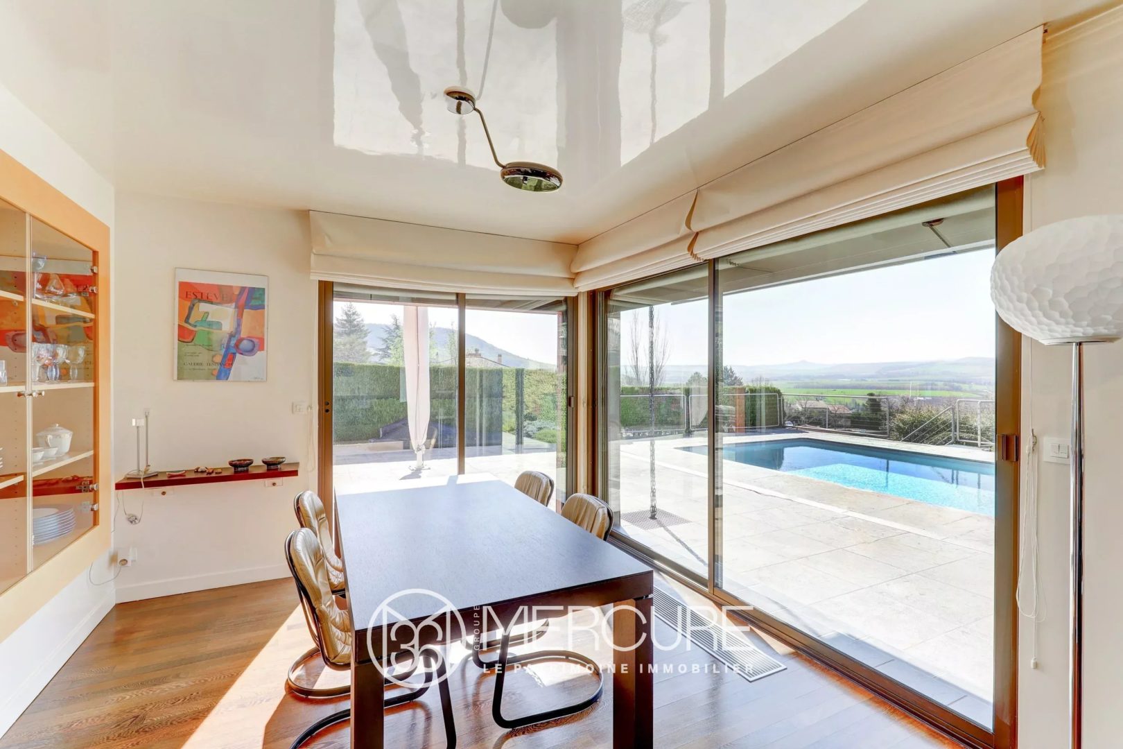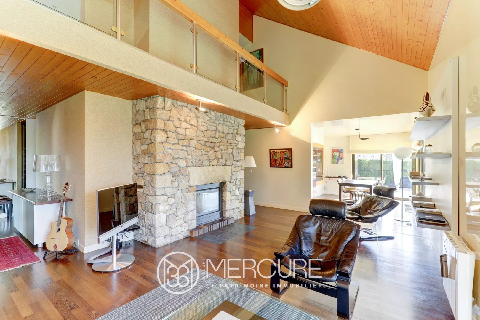 Dès l’entrée, vous serez séduit par la générosité des espaces et la luminosité omniprésente. Le rez-de-chaussée s’organise autour d’un séjour avec insert, sublimé par un toit cathédral avec verrière, créant une atmosphère chaleureuse et contemporaine. La salle à manger, en lien direct avec la terrasse et la piscine, prolonge harmonieusement les espaces de réception vers l’extérieur.
