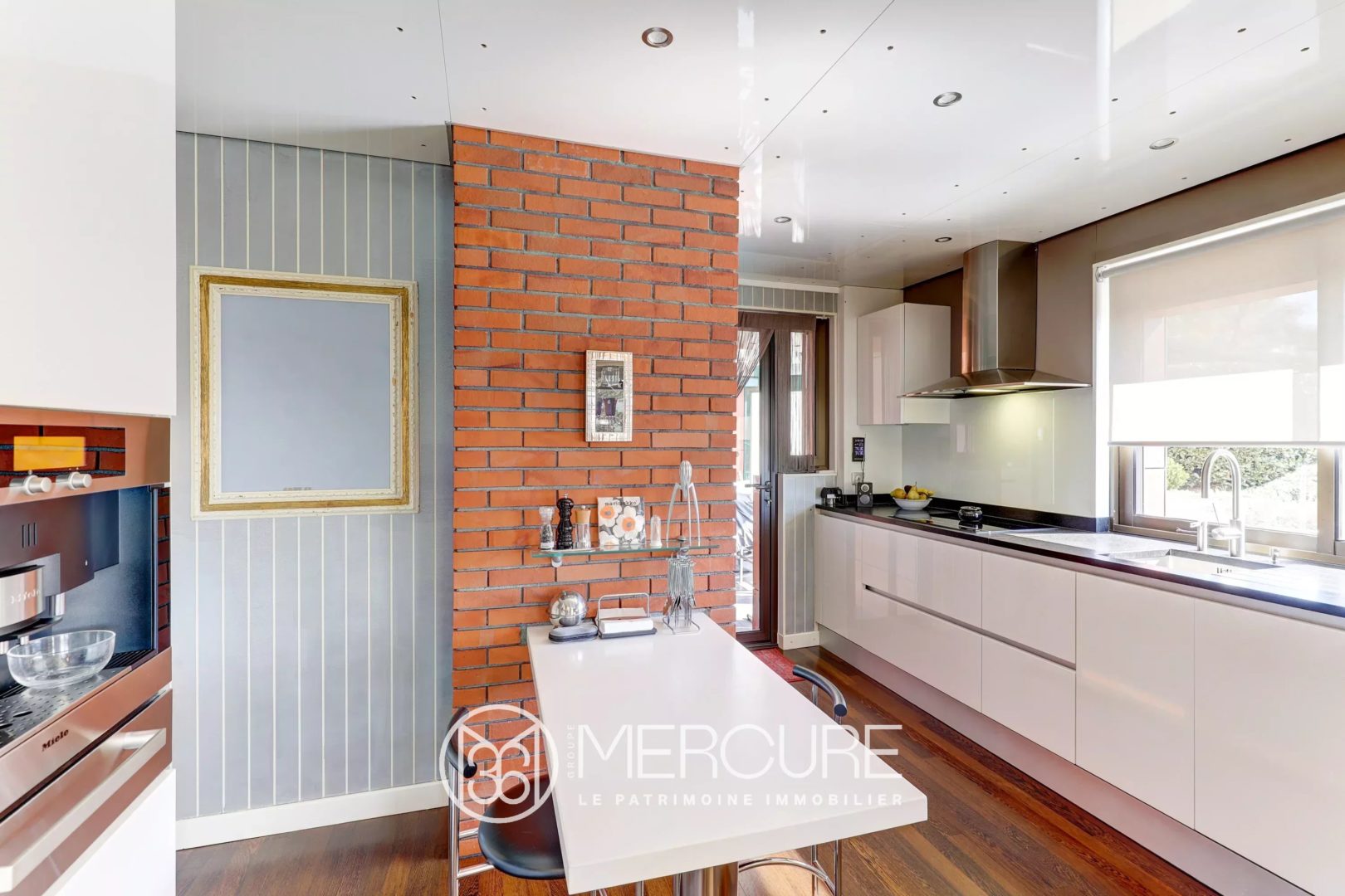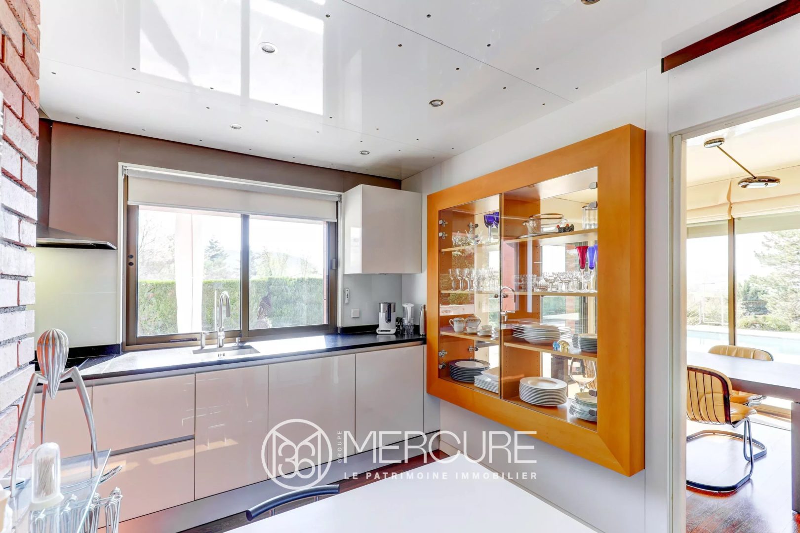 La cuisine dinatoire, réalisée avec des matériaux de qualité, dispose d’un plan de travail soigné et s’ouvre sur une arrière-cuisine fonctionnelle ainsi qu’une véranda baignée de lumière. Un dressing à l’entrée, des toilettes invités avec lave-mains complètent ce niveau.