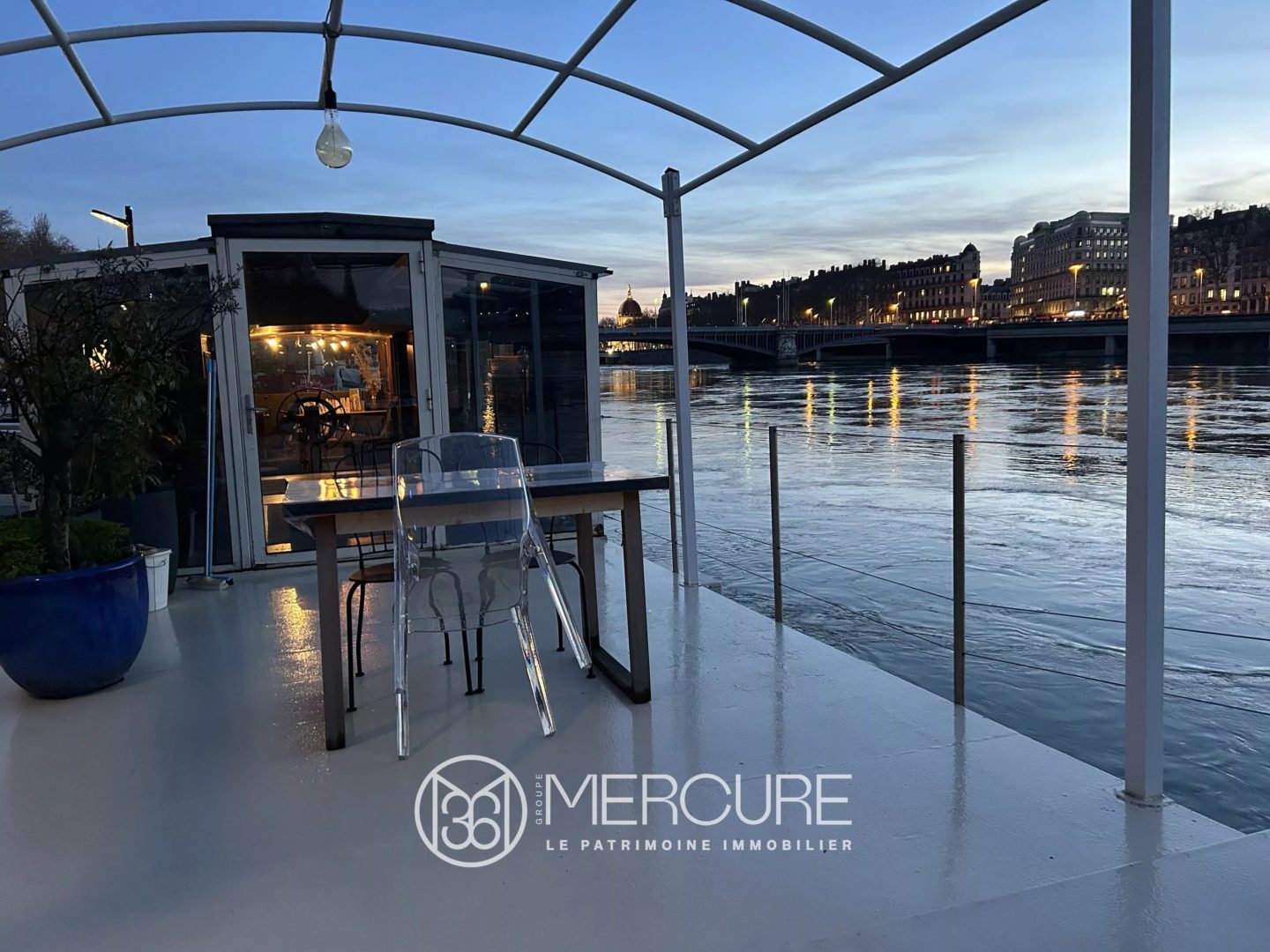 Vivez l’exceptionnel au quotidien sur cette péniche habitable de 110 m² offrant un cadre de vie unique sur le Rhône face à la Presqu’île !