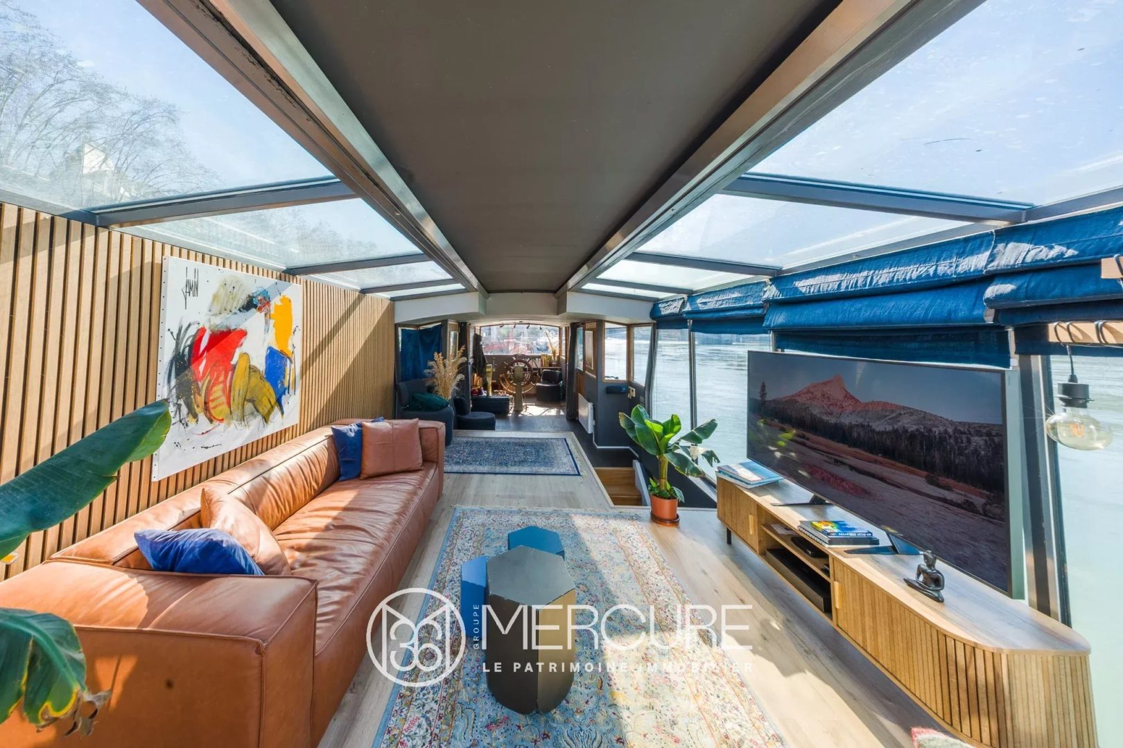 Nombreux espaces de vie et belle terrasse rénovée en 2025 ; bateau-logement amarré dans l’hypercentre lyonnais.