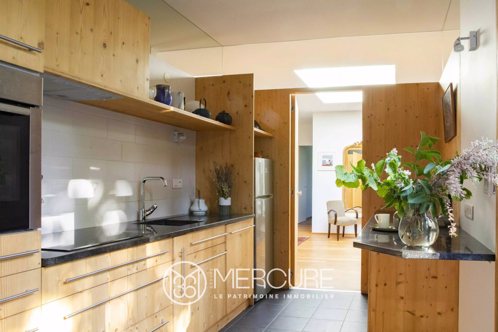 – au niveau inférieur : une chambre, une salle de douche avec toilette, un espace modulable aménageable en espace professionnel ou studio indépendant.