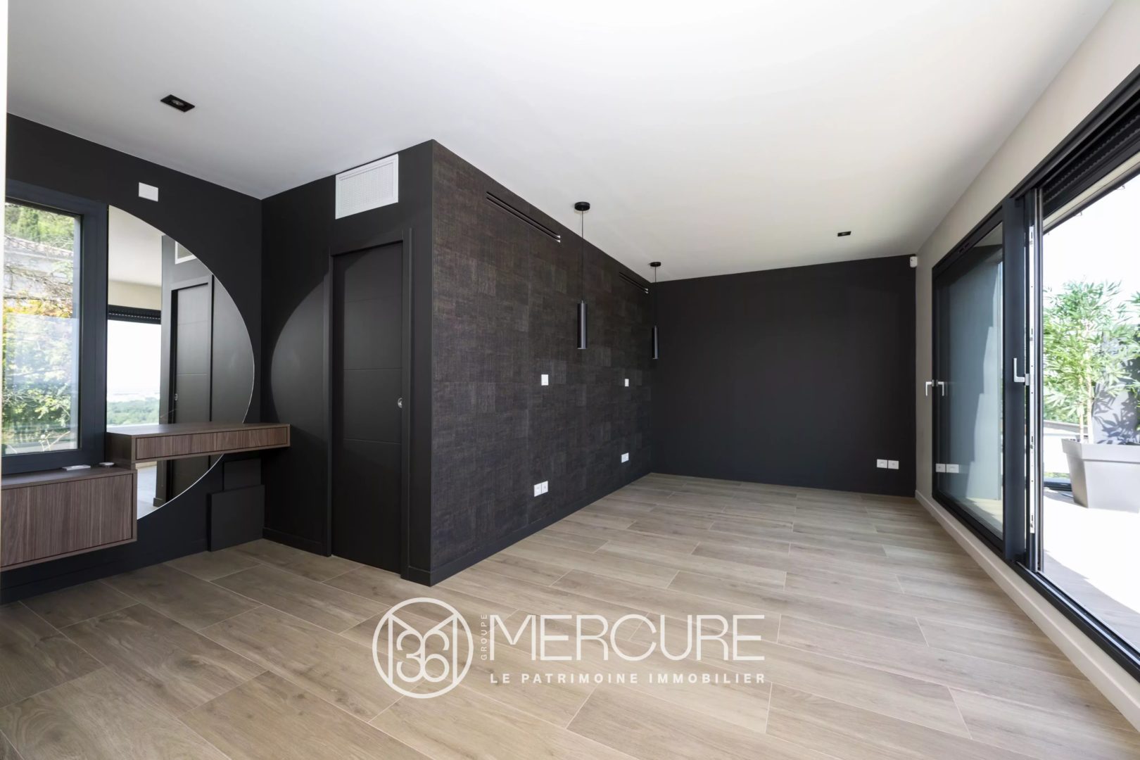 A l’étage : suite avec chambre de 20 m², dressing, salle d’eau et toilettes. Terrasse privative sud de 19 m².