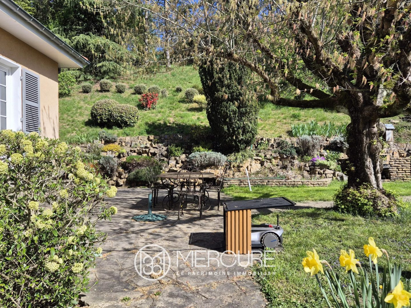 L’emploi de matériaux qualitatifs lors de la construction de cette maison ainsi que les choix opérés par les actuels propriétaires lors de deux campagnes de travaux en 2016 et en 2023 sont des atouts différenciants sur le marché des Monts-d’Or aujourd’hui : pierre d’Hauteville au sol (réception et distributions), huisseries qualitatives en doubles vitrages, chauffage par pompe à chaleur récente (DPE performant).