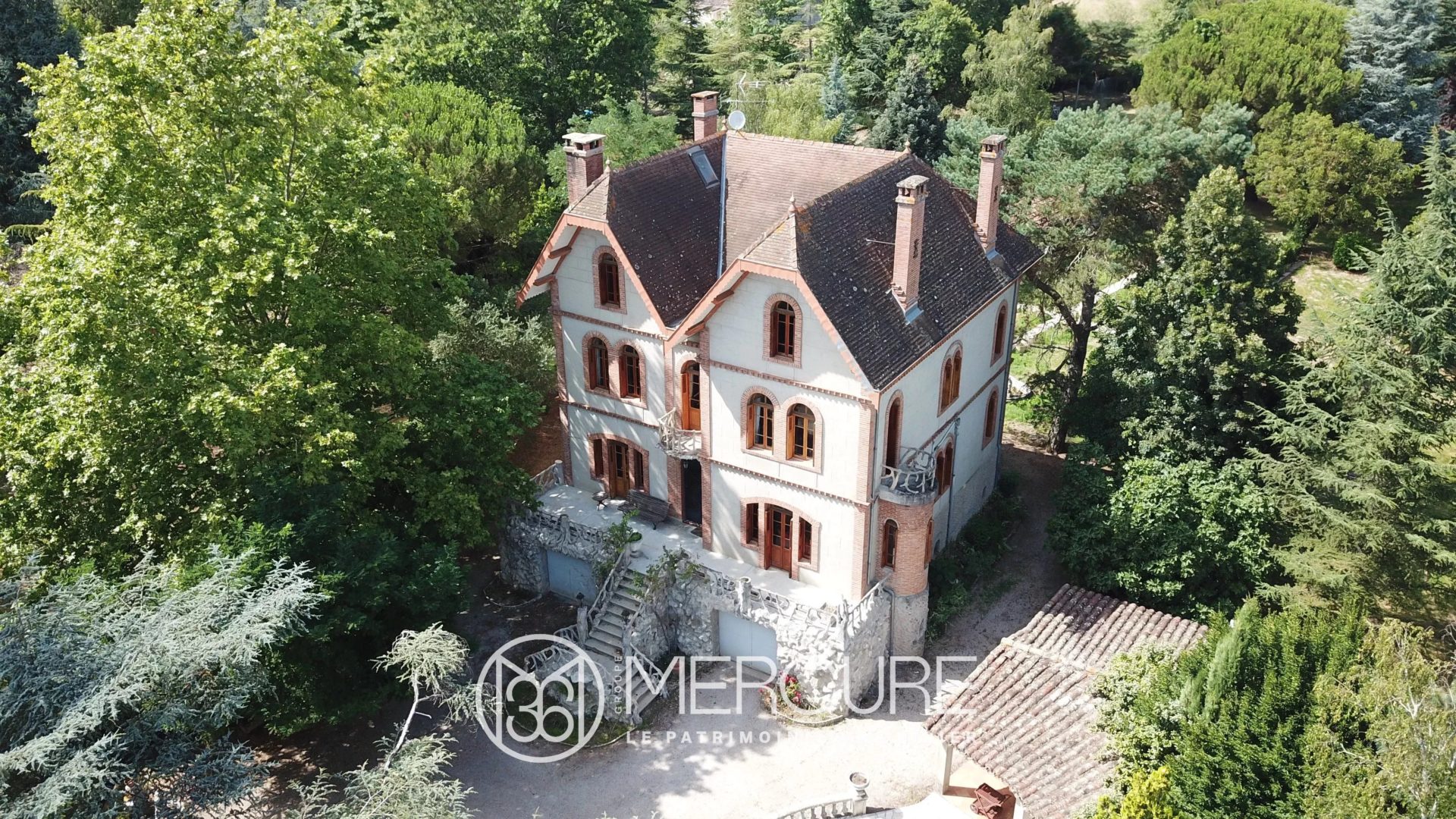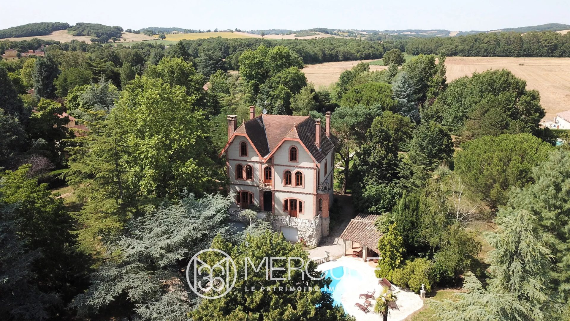 Le tout dans un joli parc arboré avec une piscine, un pool-house, un court de tennis et une grande dépendance