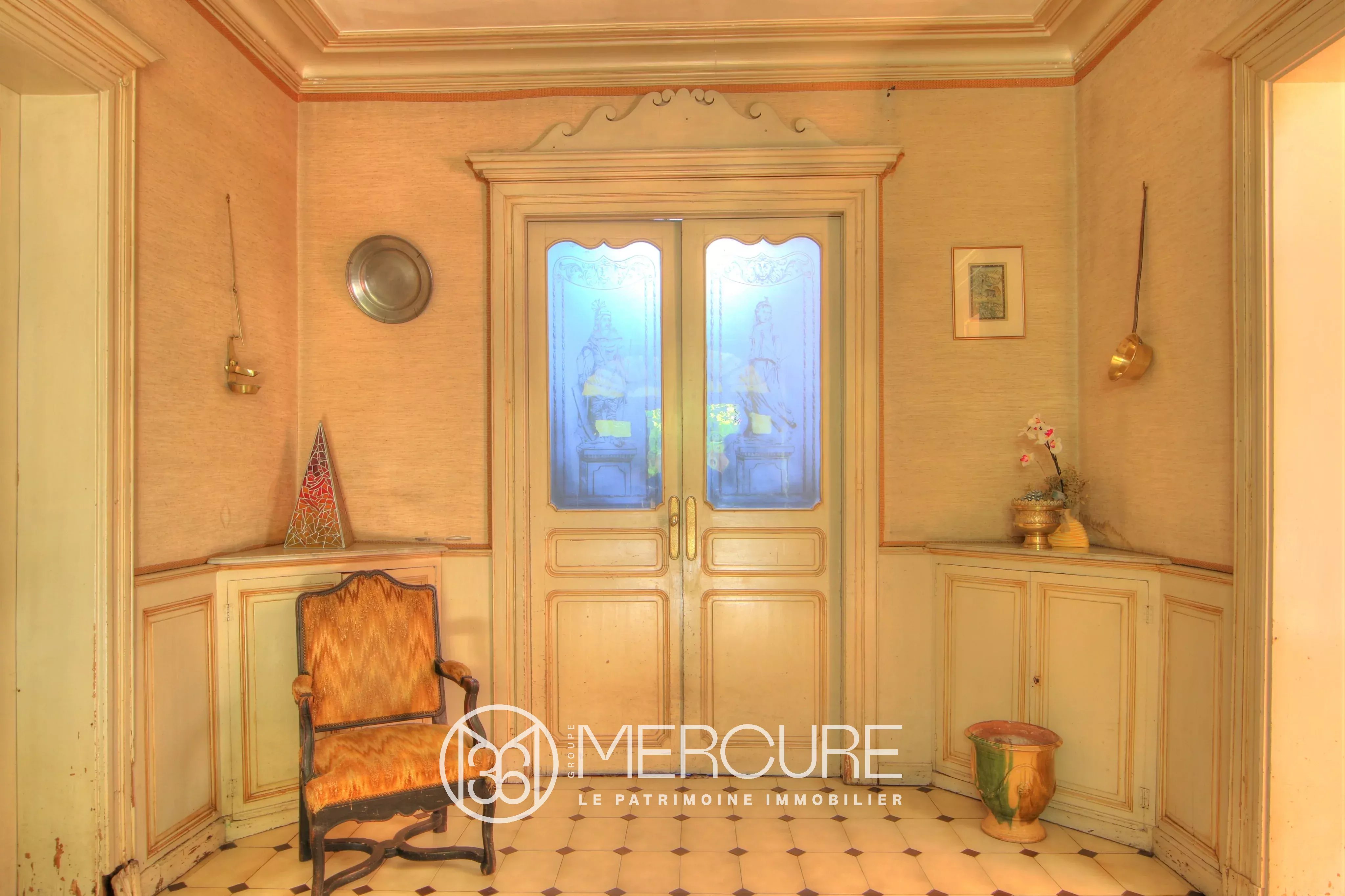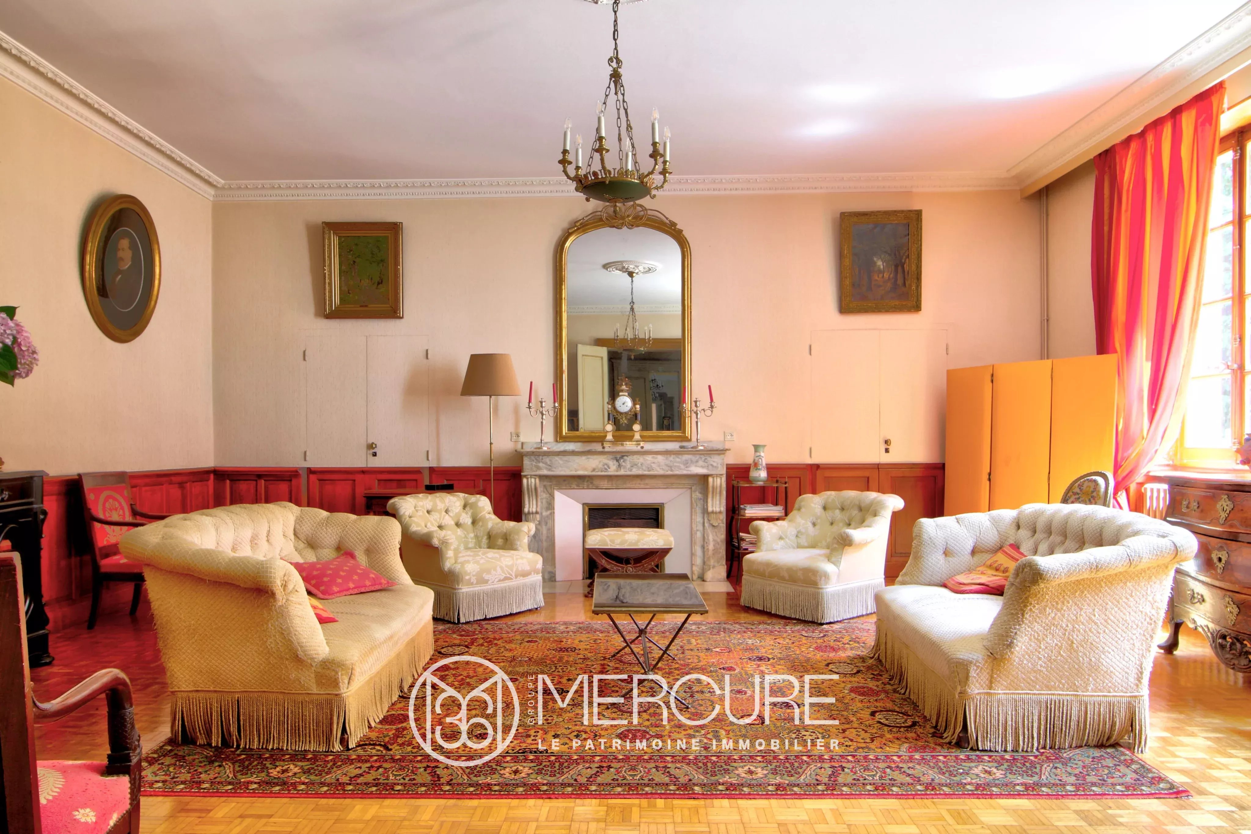 Au cœur d’un joli village, bel ensemble composé d’une grande maison de maître de 843m² habitables. Très beaux éléments d’origine : très bel escalier en pierre et rampe fer forgé, parquets, menuiseries, terres cuites, cheminées en marbres, etc.. Belles dépendances de 576m². Pas de vis à vis.