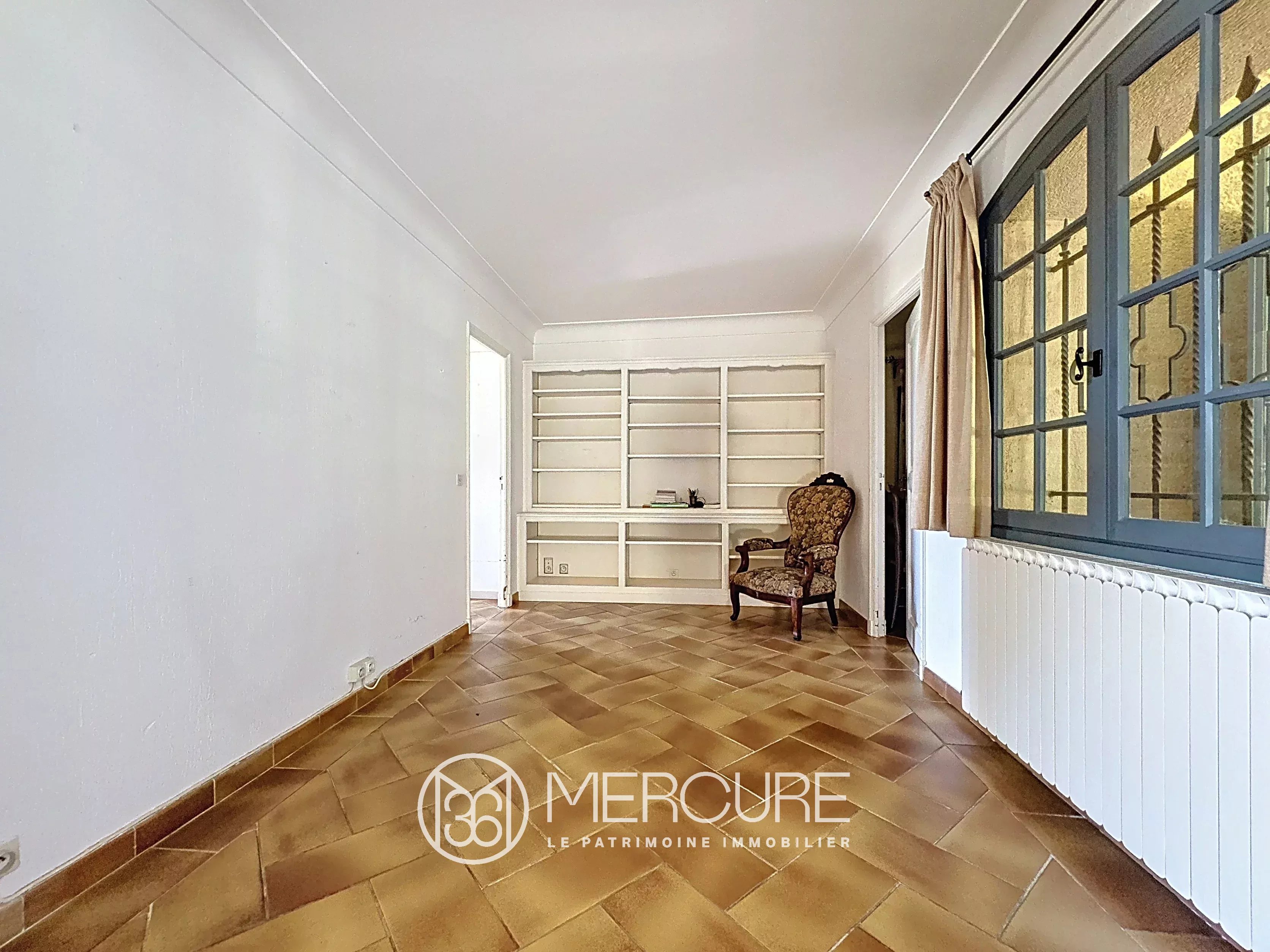 La villa actuelle à rénover d’environ 230m² offre beaucoup de charme avec sa terrasse de glycines plein sud, son double living, cuisine et ses 4 chambres en suites ainsi qu’un niveau total en rez-de-jardin avec garage et de multiples pièces annexes.