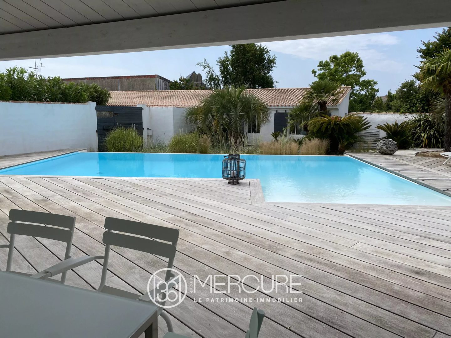 Le tout est implanté sur un terrain clos et paysager d’environ 1300 m², offrant une superbe piscine à débordement de 10 x 5 m avec plage et chauffée, terrasses et espaces de détente, préaux, jardin arboré et aire de stationnement.
