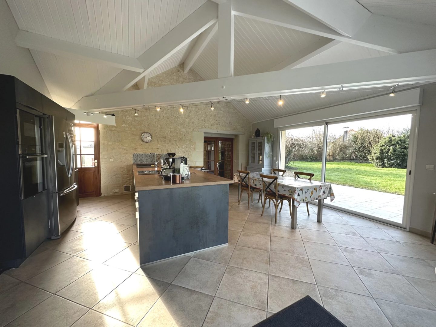 – Cuisine (33,9 m²) récente avec îlot central et hotte motorisée, 2 baies vitrées ouvrant sur terrasse