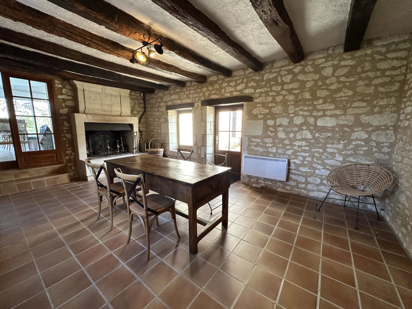 – Salle à manger avec cheminée et poutres (28,8 m²)