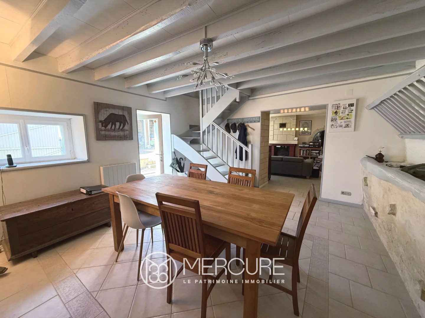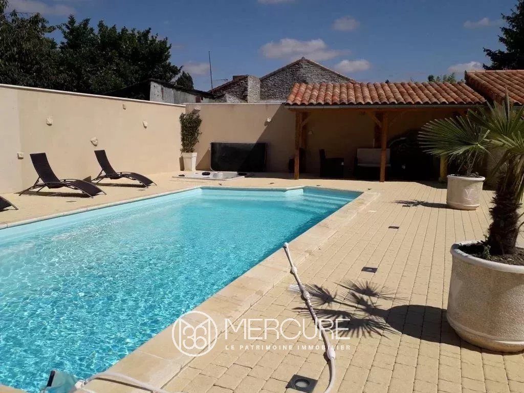 A l’abri des nuisances, longère rénovée en pierre apparentes de 130 m² avec piscine, spa et grand garage de 105 m² adapté aux véhicules hauts sur 1.010 m² de terrain.