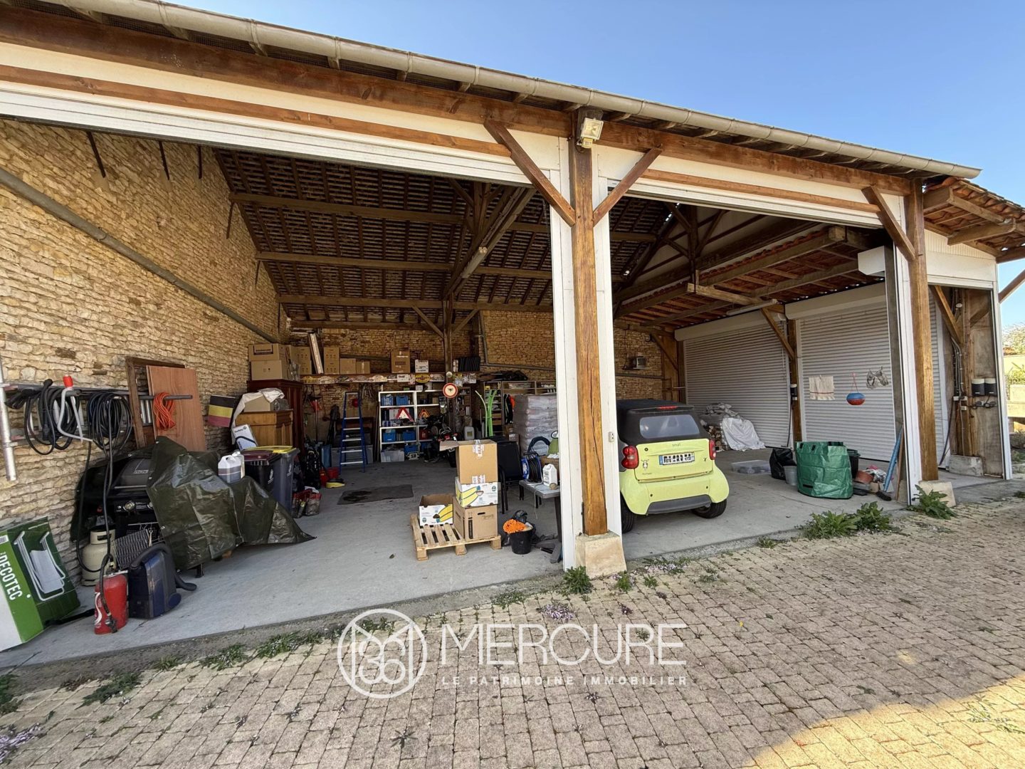 Les dépendances se composent d’un vaste garage avec trois portes motorisées, un cellier et un local technique.
