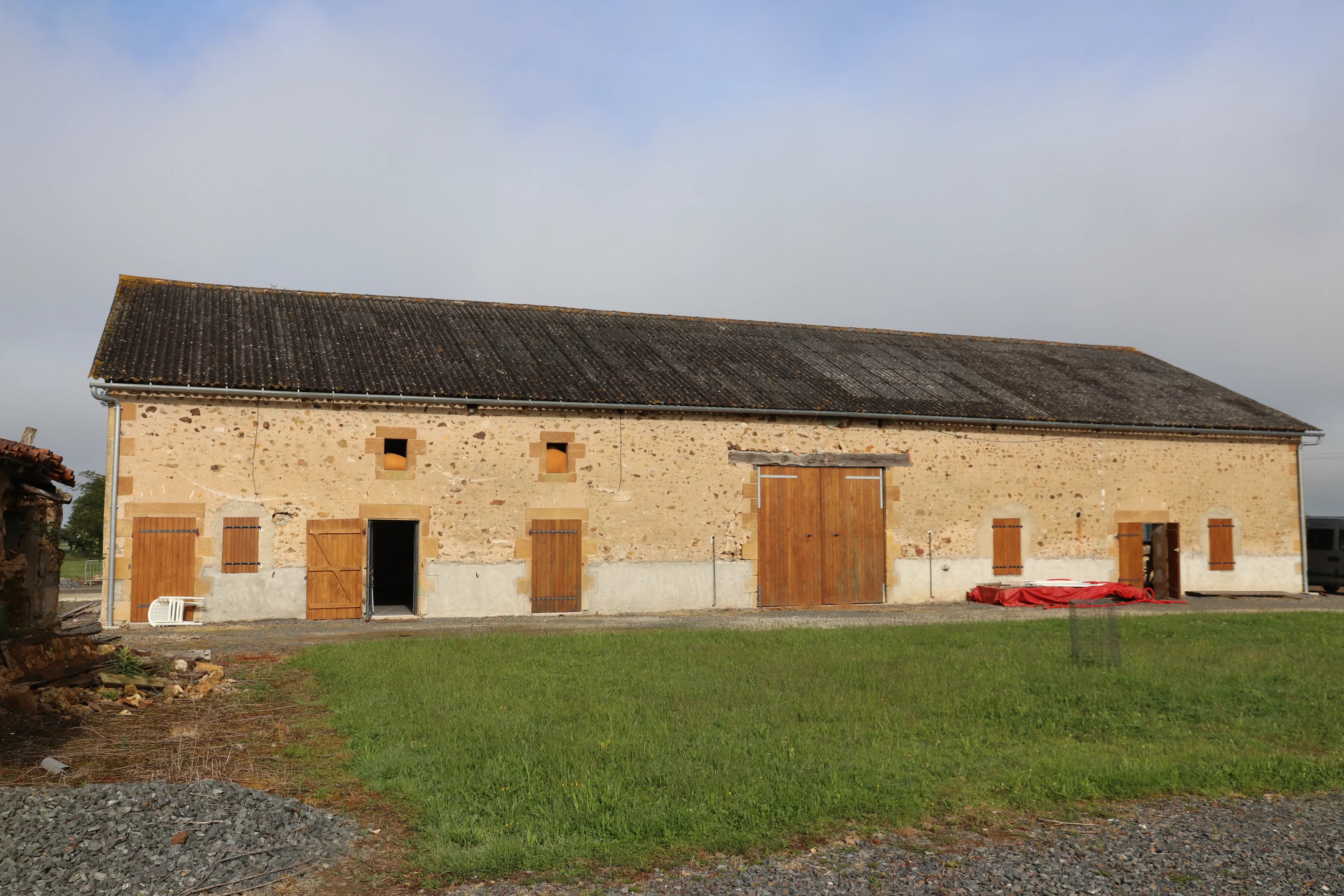 – grande grange attenante avec chambre froide, salle de découpe, silo pour maïs, et espace de stockage pour matériel d’entretien.