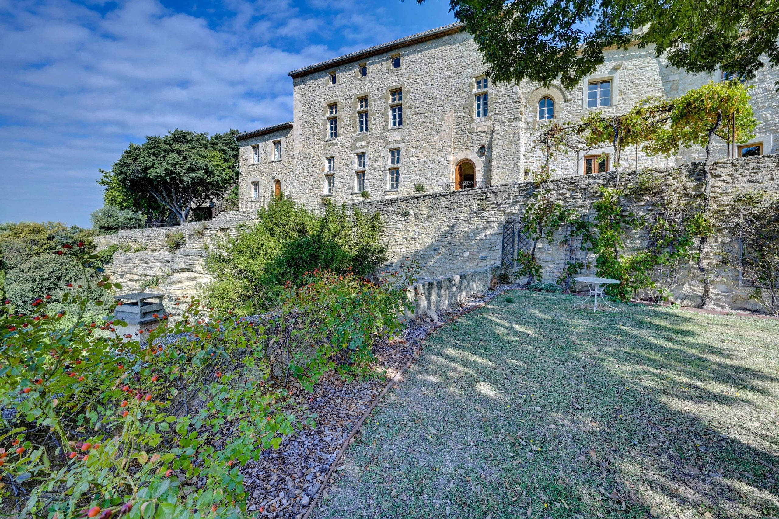 D’une surface de 380m² et très lumineux, il s’ouvre sur un ravissant jardin en terrasses avec piscine. Il dispose d’un élégant salon vouté, d’une cuisine authentique avec office, de cinq chambres en suites desservies par un ascenseur. Il comprend aussi une jolie maison annexe de 60m² pour amis ou gardien.