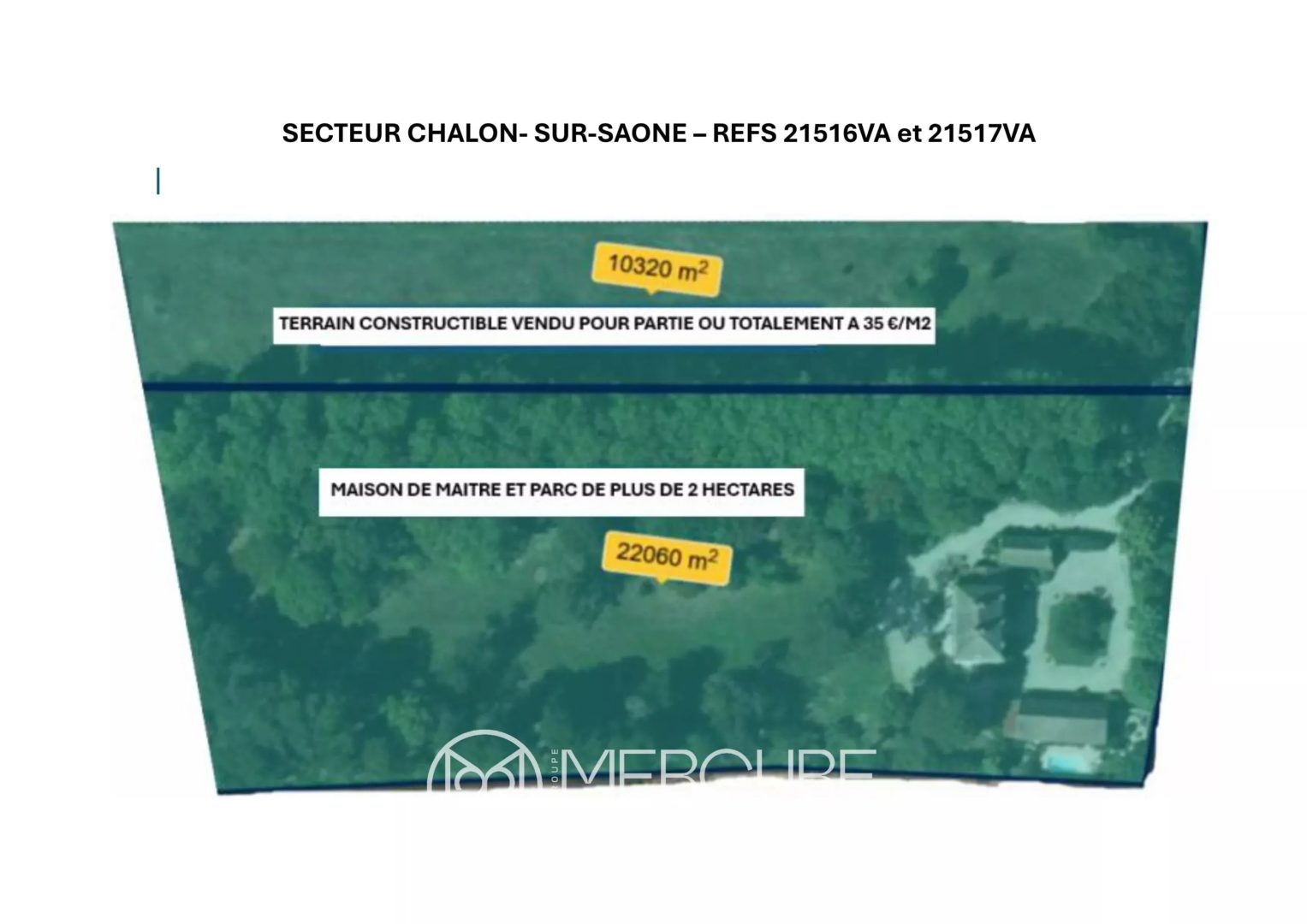 NB: All or part of the building land is sold only with the mansion (Mandates No. 21516VA and 21517VA).