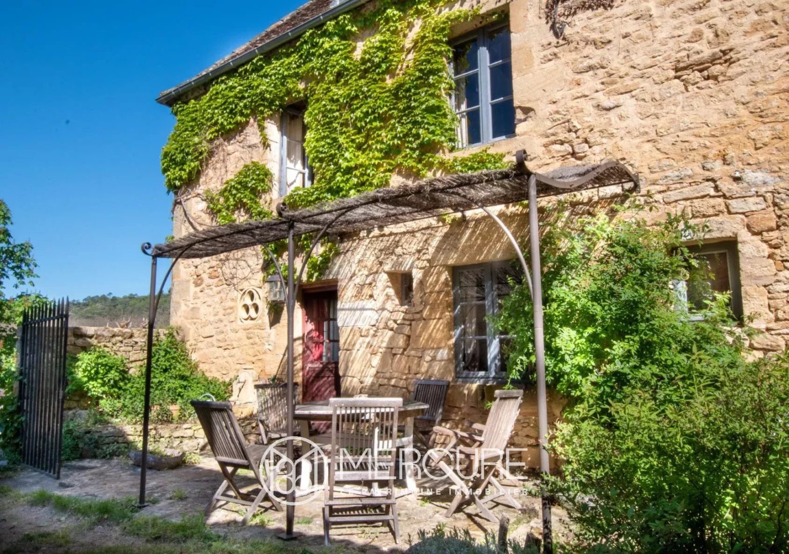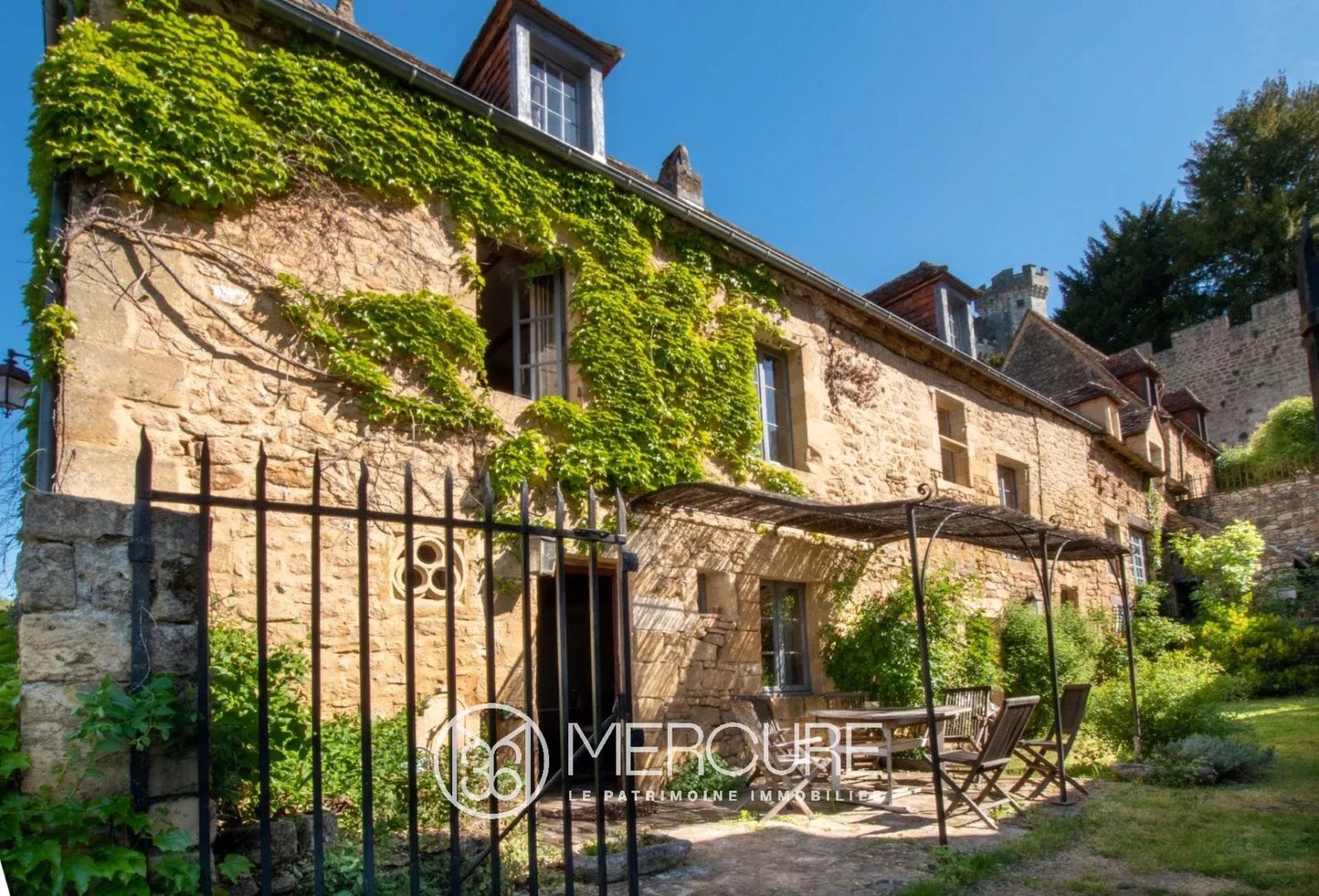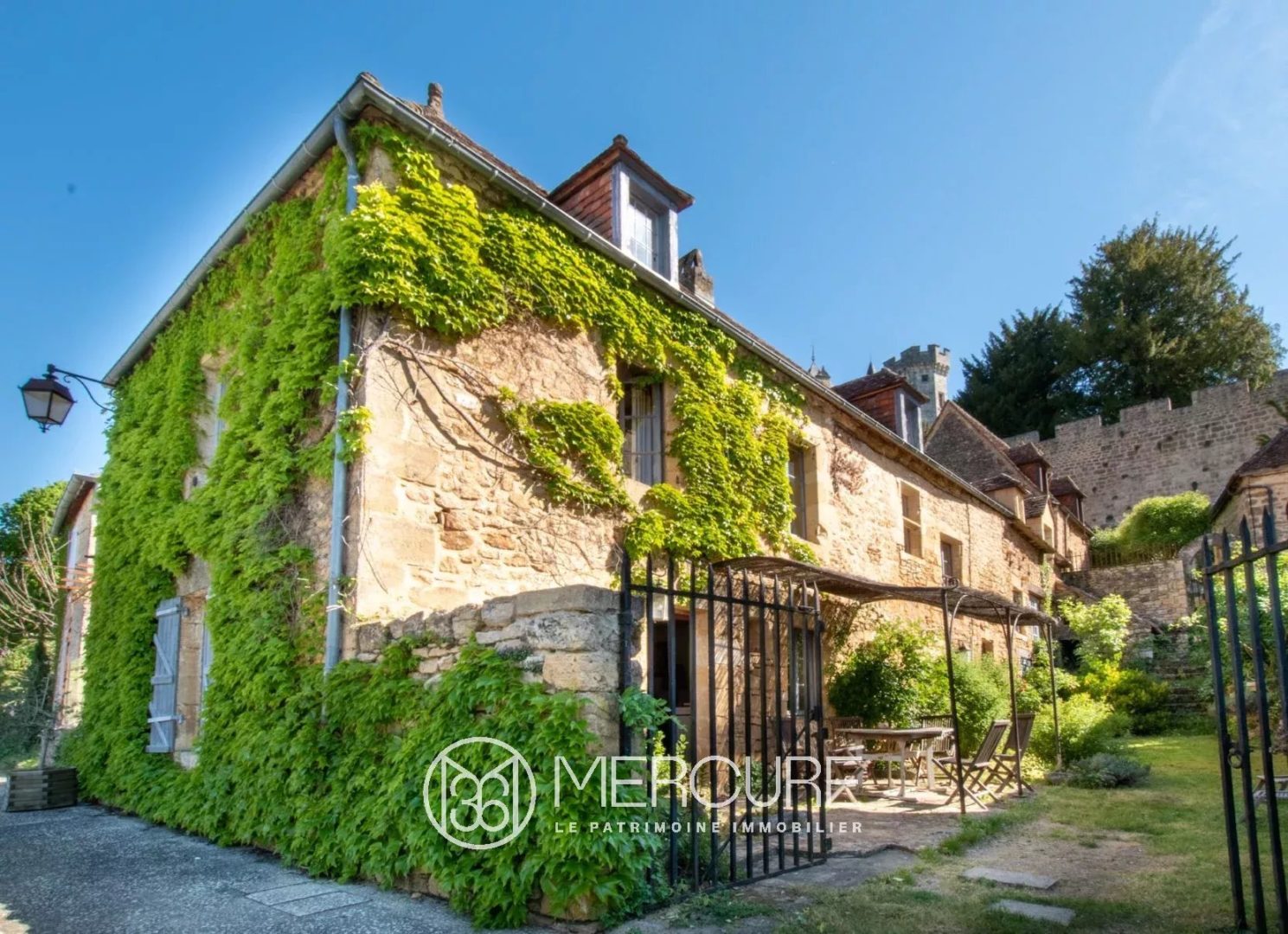 In the heart of a charming village in the Périgord, with its stone houses and medieval castle overlooking them, nestles this superb house with authentic charm. A charming shaded terrace, a small garden, a vast kitchen-dining room and a living room are located on the ground floor. The first floor has a second living room, a bedroom and a shower room. A spiral staircase leads to the second floor where we find 2 bedrooms and a bathroom. A 72m² flat with a separate entrance, dining room with kitchenette and a bedroom complete the ensemble. Sarlat 12mn, shops and services 5mn, A20 motorway 20mn, Brive airport 40mn, Bergerac airport 1h10, tourist sites of the Périgord close by.