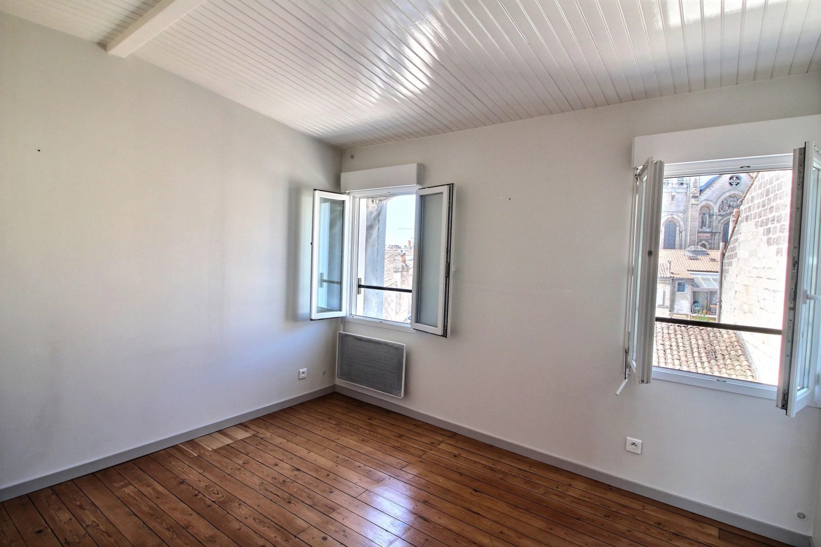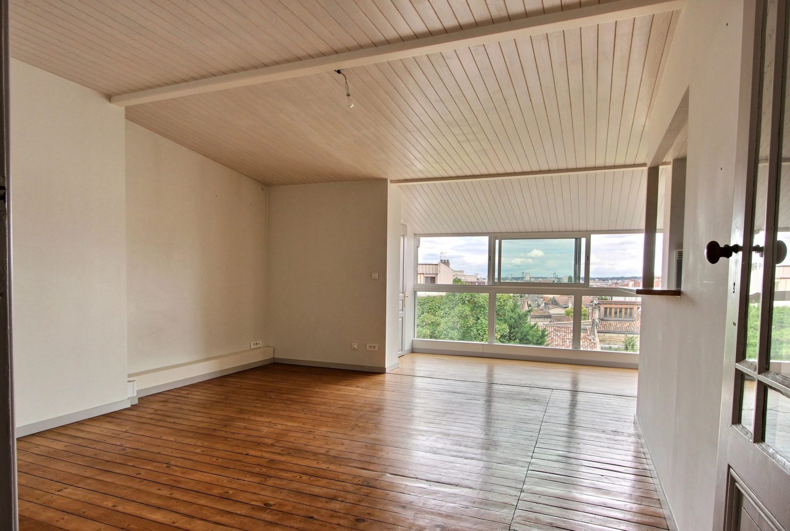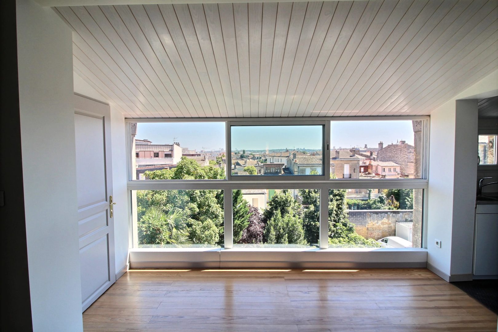 For sale, Fondaudège, through apartment of 72 m2 located on the 3rd and last floor of a stone building with panoramic views over Bordeaux. Very quiet street, near Tram D, Place Marie Brizard and Jardin Public. You will appreciate the renovation of the apartment and the charm of the old with the vitrified parquet. American kitchen opening onto a large living room of around 30 m2, double east / west exposure. Two bedrooms with a view of the Saint-Ferdinand church. Co-ownership of 4 apartments managed by a voluntary property manager.