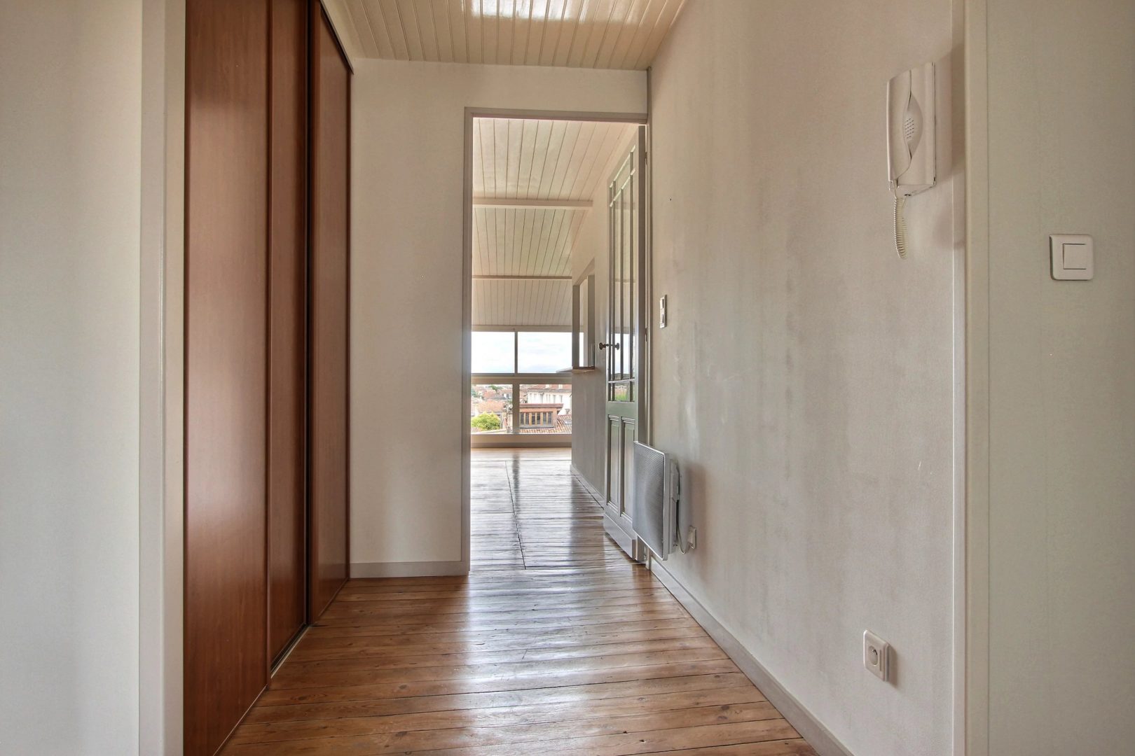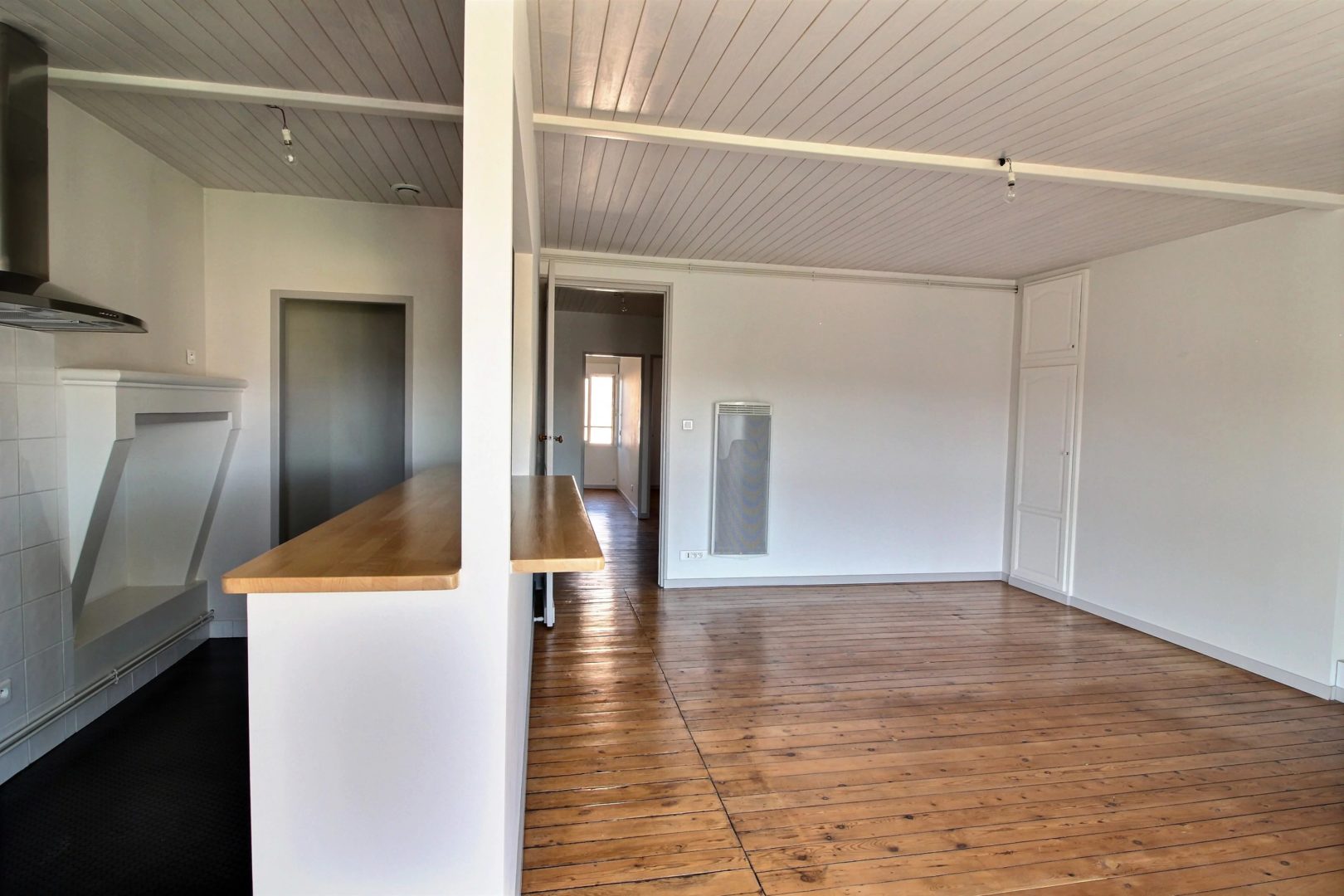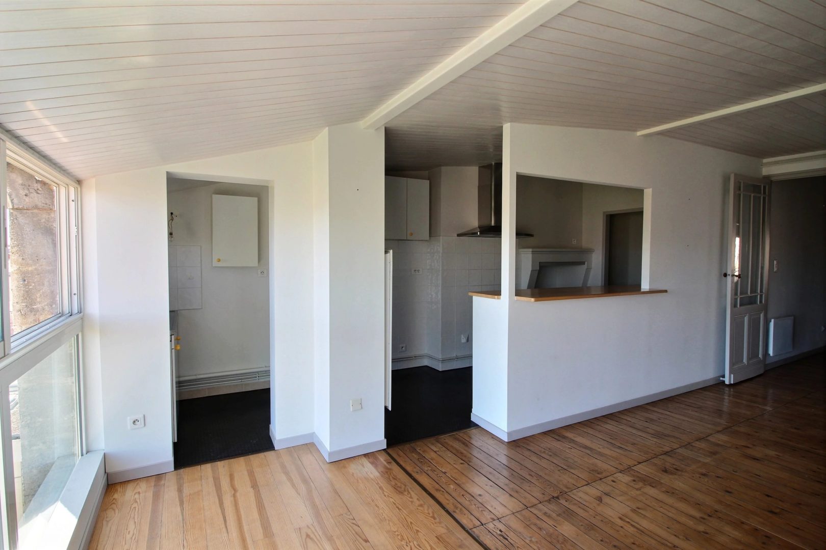 For sale, Fondaudège, through apartment of 72 m2 located on the 3rd and last floor of a stone building with panoramic views over Bordeaux. Very quiet street, near Tram D, Place Marie Brizard and Jardin Public. You will appreciate the renovation of the apartment and the charm of the old with the vitrified parquet. American kitchen opening onto a large living room of around 30 m2, double east / west exposure. Two bedrooms with a view of the Saint-Ferdinand church. Co-ownership of 4 apartments managed by a voluntary property manager.