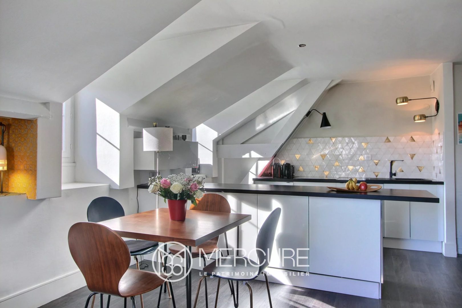 Recent renovation for your comfort and quality decoration with noble materials and careful finishing (white paint on walls and beams, design wallpaper, large worktop and golden kitchen tiles, contemporary bathroom, elegant television cabinet and custom-made double glazed window).