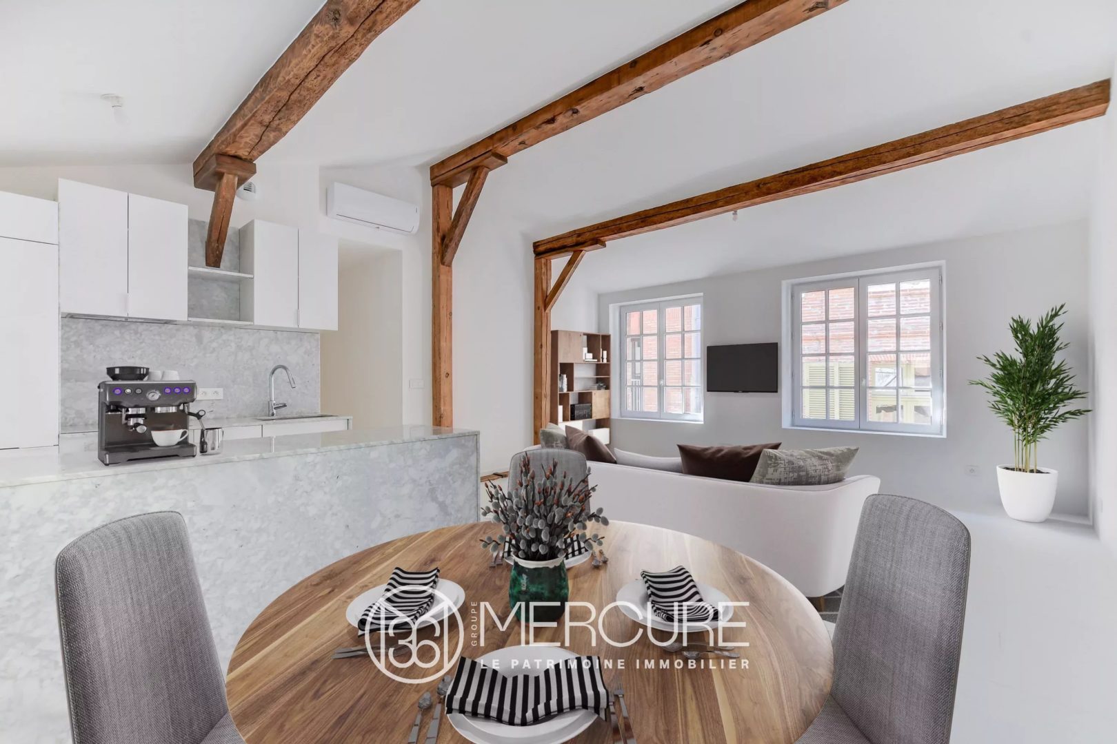 Ideally located in a quiet street near the shops, this apartment combines the charm of the old with a meticulous and contemporary renovation. The equipped kitchen opens onto a dining room and living room. The apartment has two beautiful bedrooms. It also has a covered parking space.