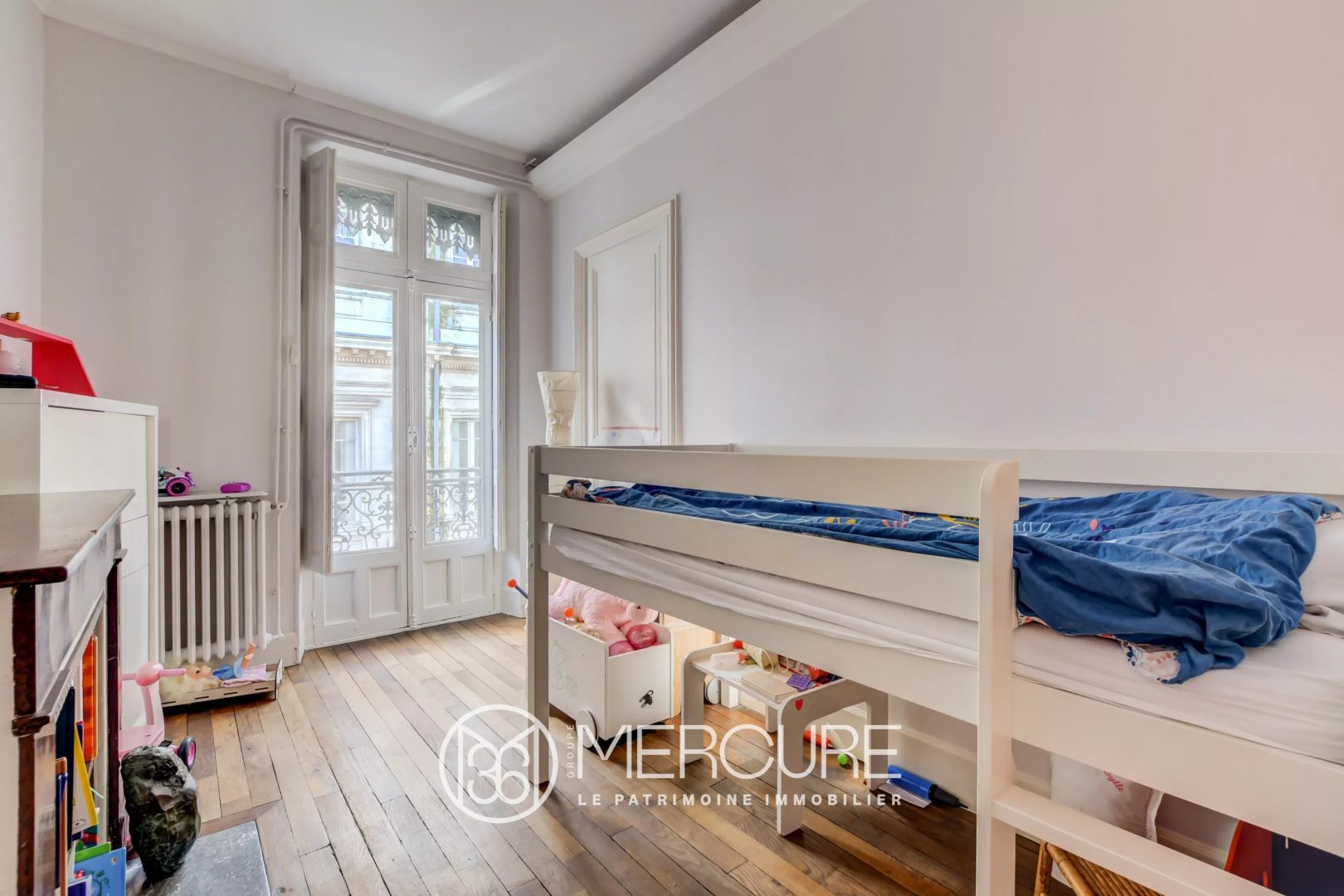 In the heart of the pink city and a stone’s throw from the Victor Hugo market, a 180 m² family flat which is both calm and bright. The flat has a large living room on the street side with four French windows giving access to a large balcony. The fully equipped kitchen has been completely renovated by the owners while retaining its character. iTS 4 bedrooms and an office are ideal for family.