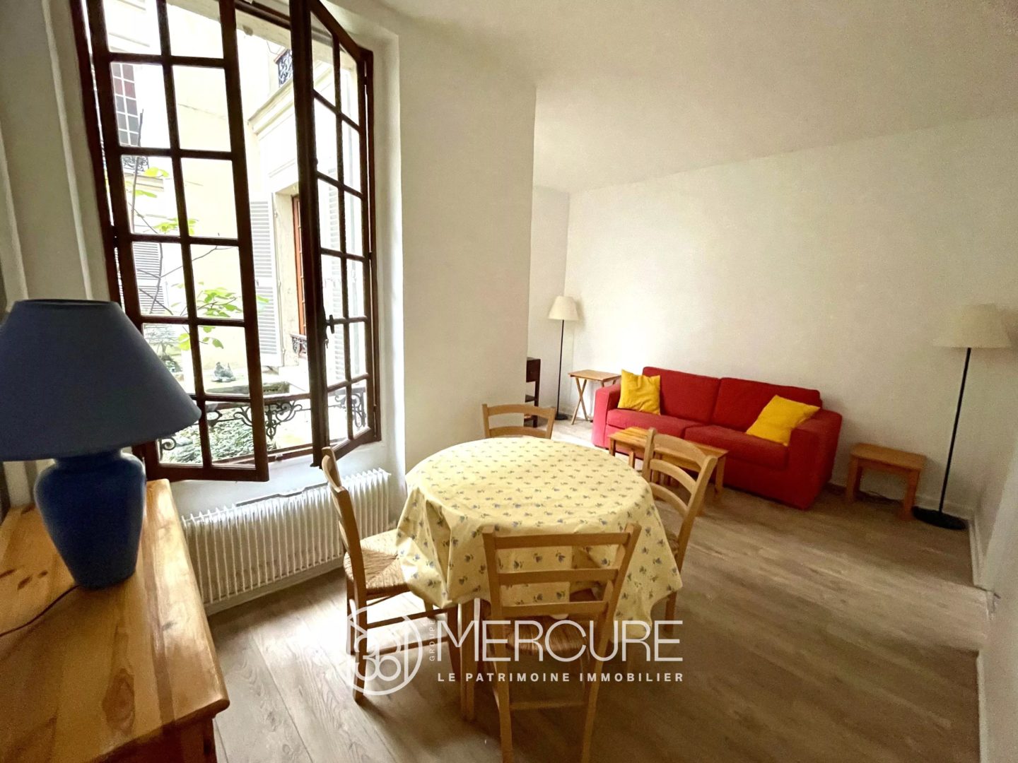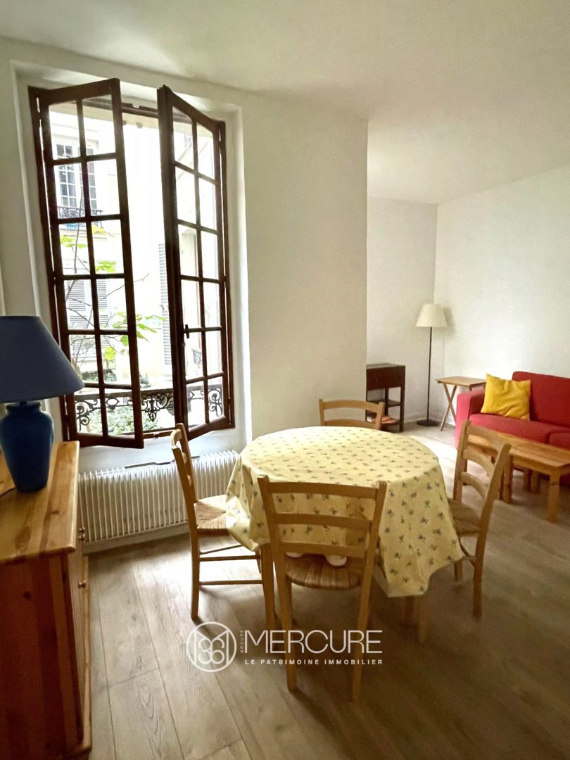 For sale Paris 7ème- Gros Caillou, Rue Cler, quiet 30sqm 2 rooms ground-floor apartment opening onto a charming courtyard planted with trees.