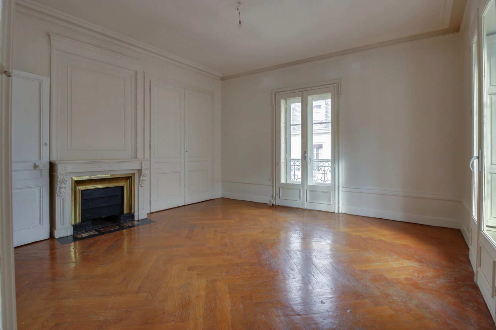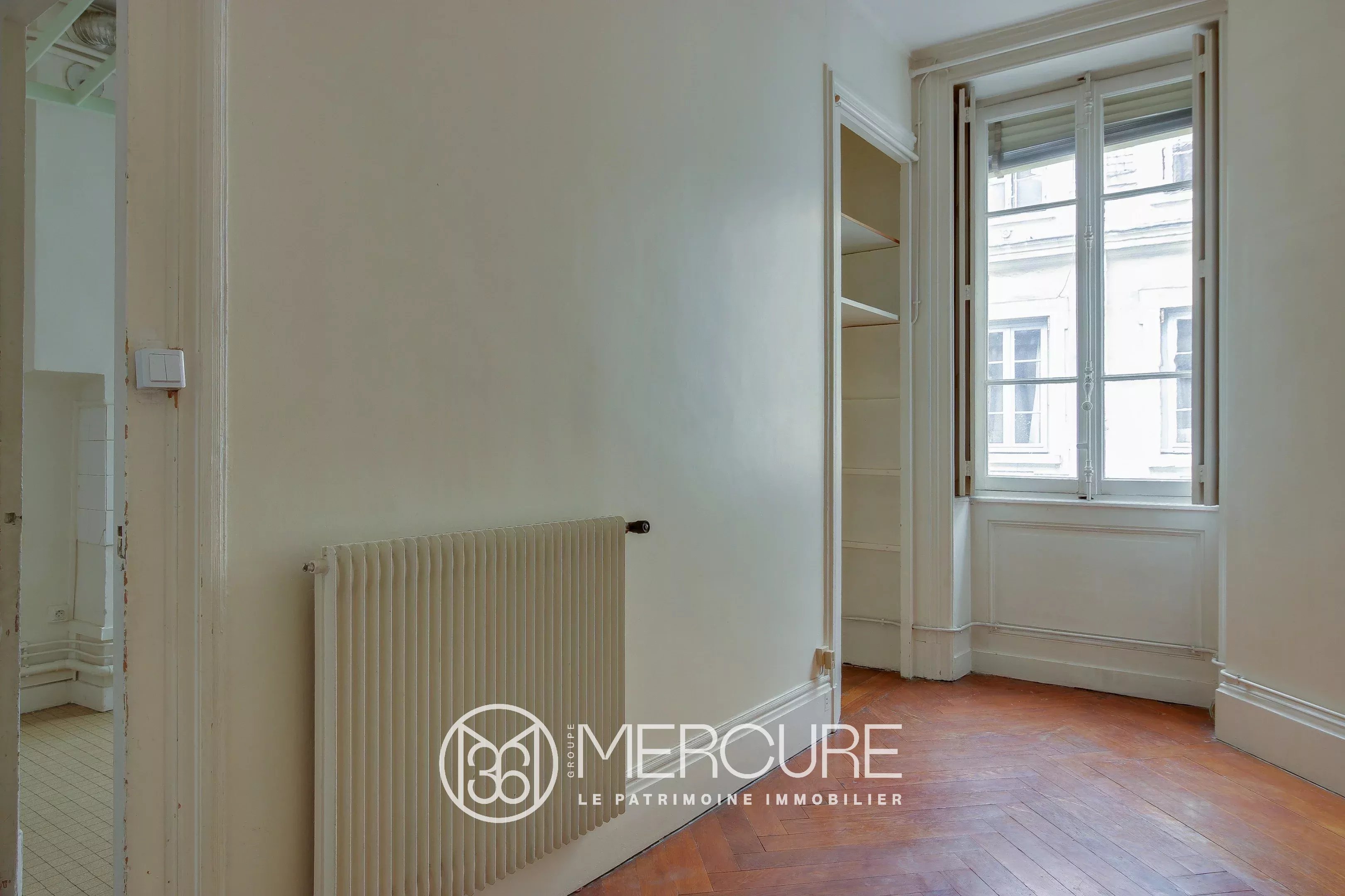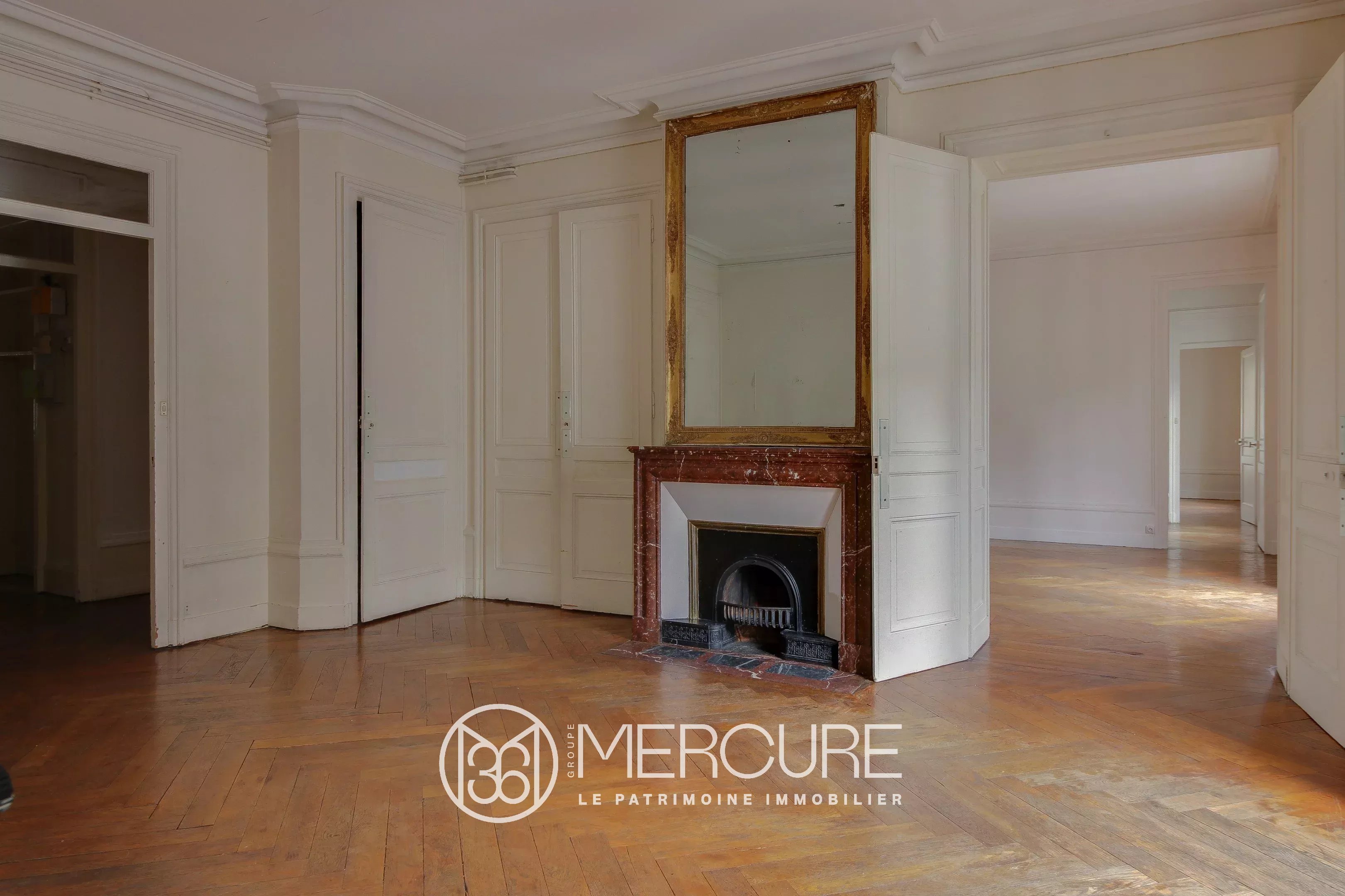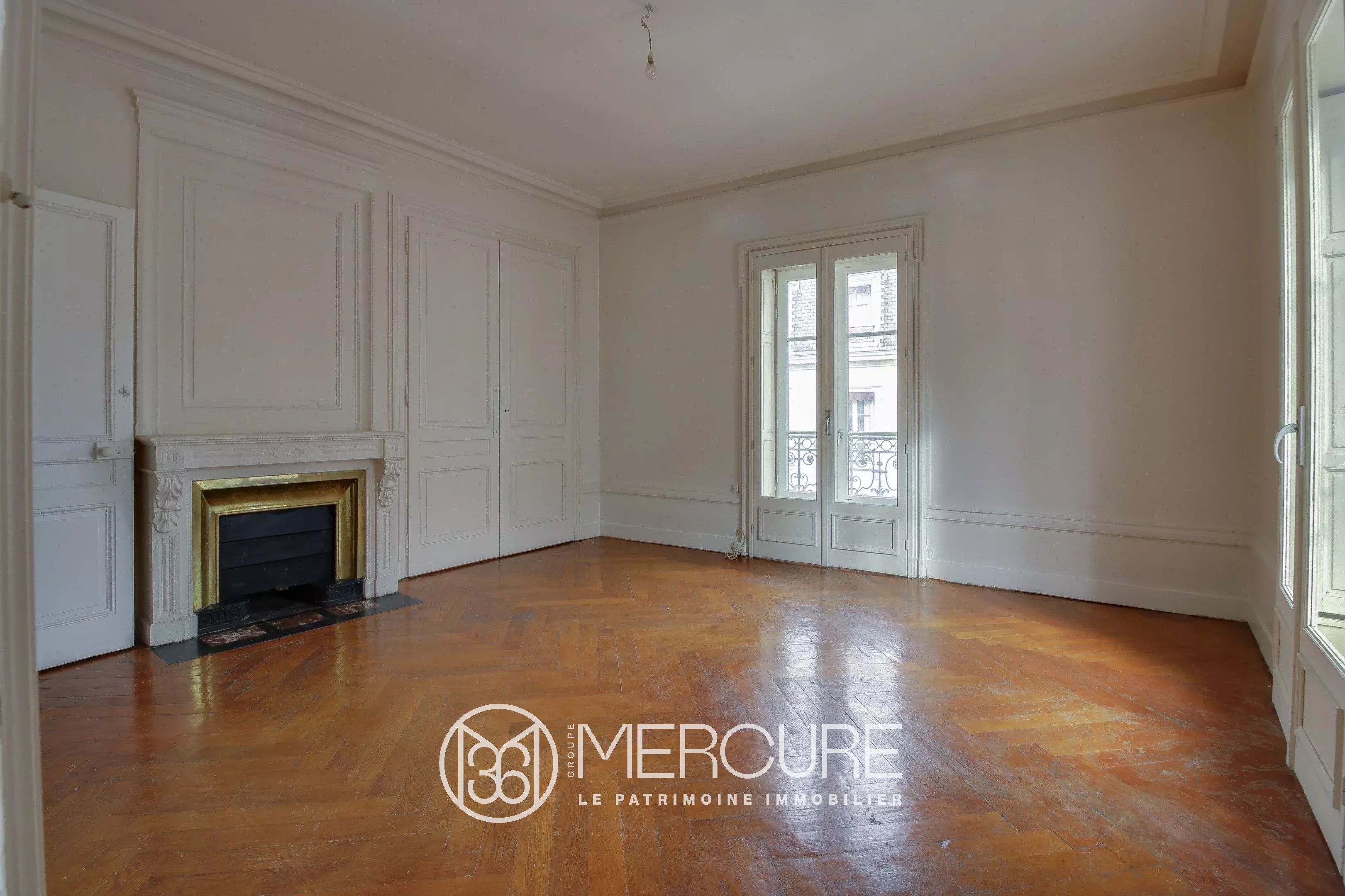 In a quiet street, in a beautiful building of Haussmanian type of very good standing, high floor with elevator, corner apartment of 142.87 m², noted for its large volumes and a beautiful light. A large entrance of 23 m² serves a double reception of 45 m² (the entrance could be open in this space), a separate kitchen (to renovate), a master bedroom of 22 m², bathroom. 3 rooms children and room of water, TOILET. Balcony spinning. Refreshment to predict. Ceiling height of more than 3 meters, parquet, beautiful moldings and fireplace. Fluid plan, brightness, large volumes. Calm. Charm of the old. Very nice address Lyons hyper-center in the area of the Basilica, quieter. Close to all shops, schools, transport, train station. A closed garage completes this property.