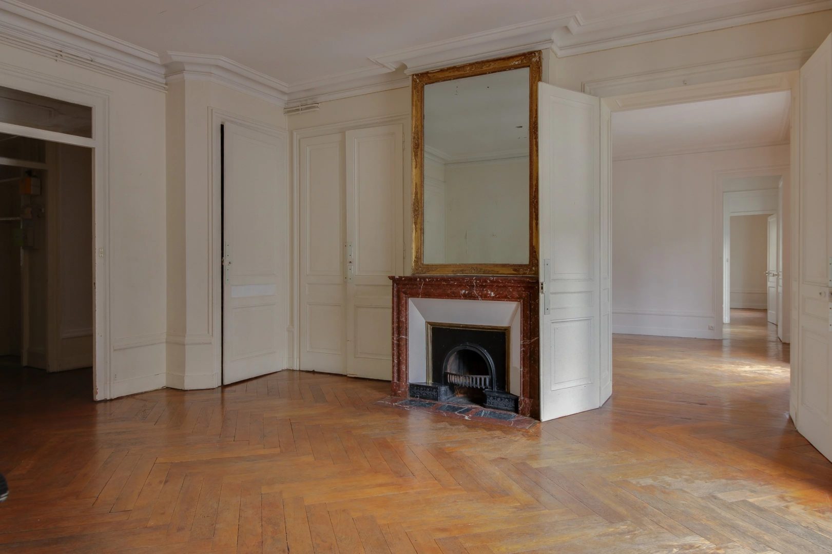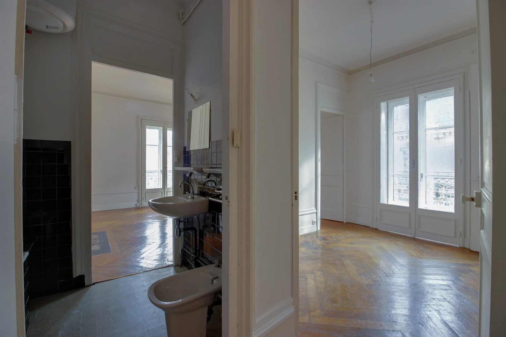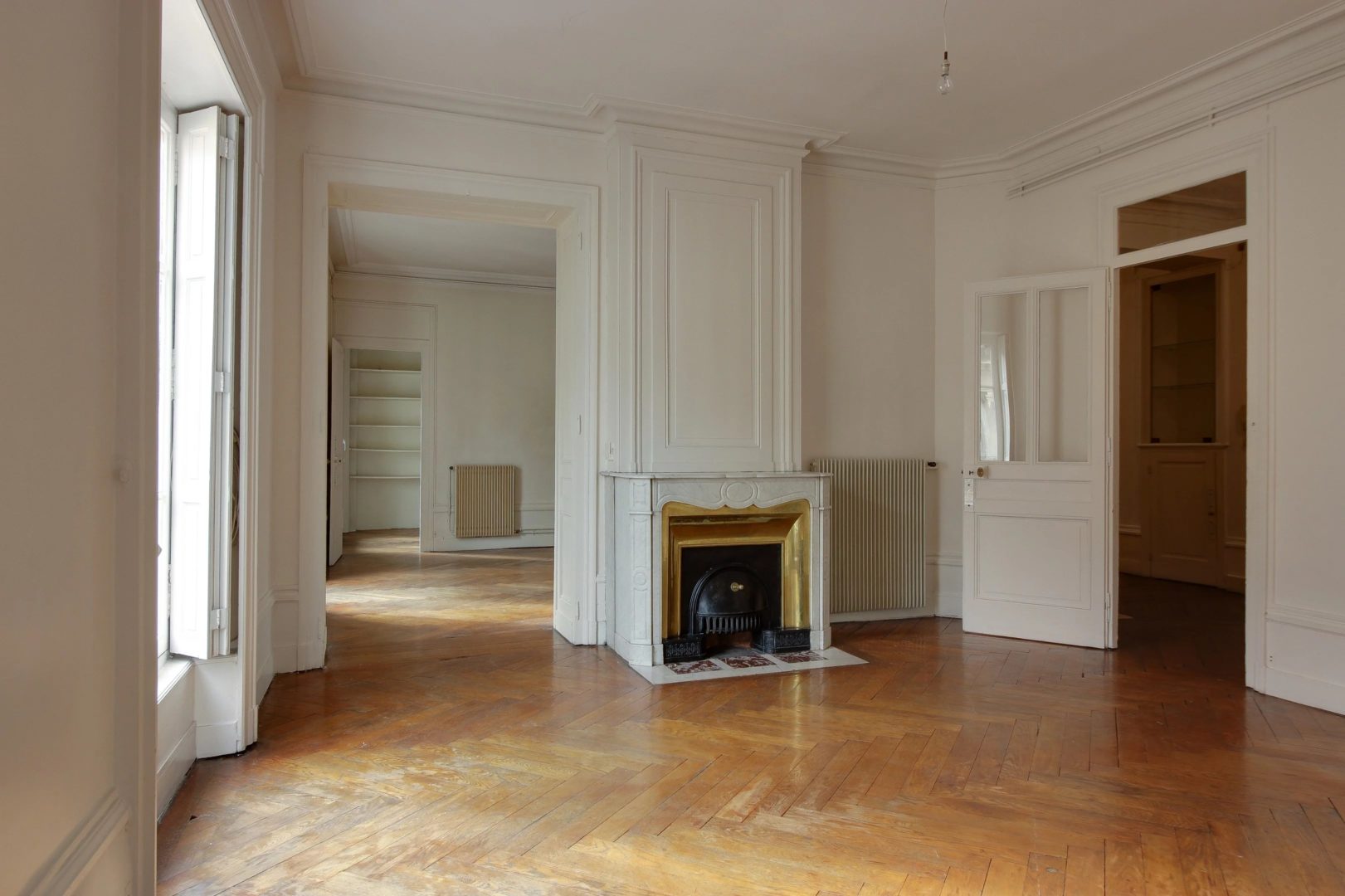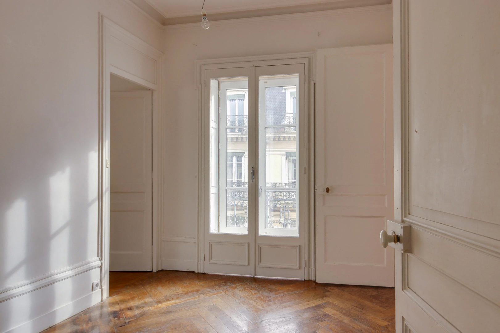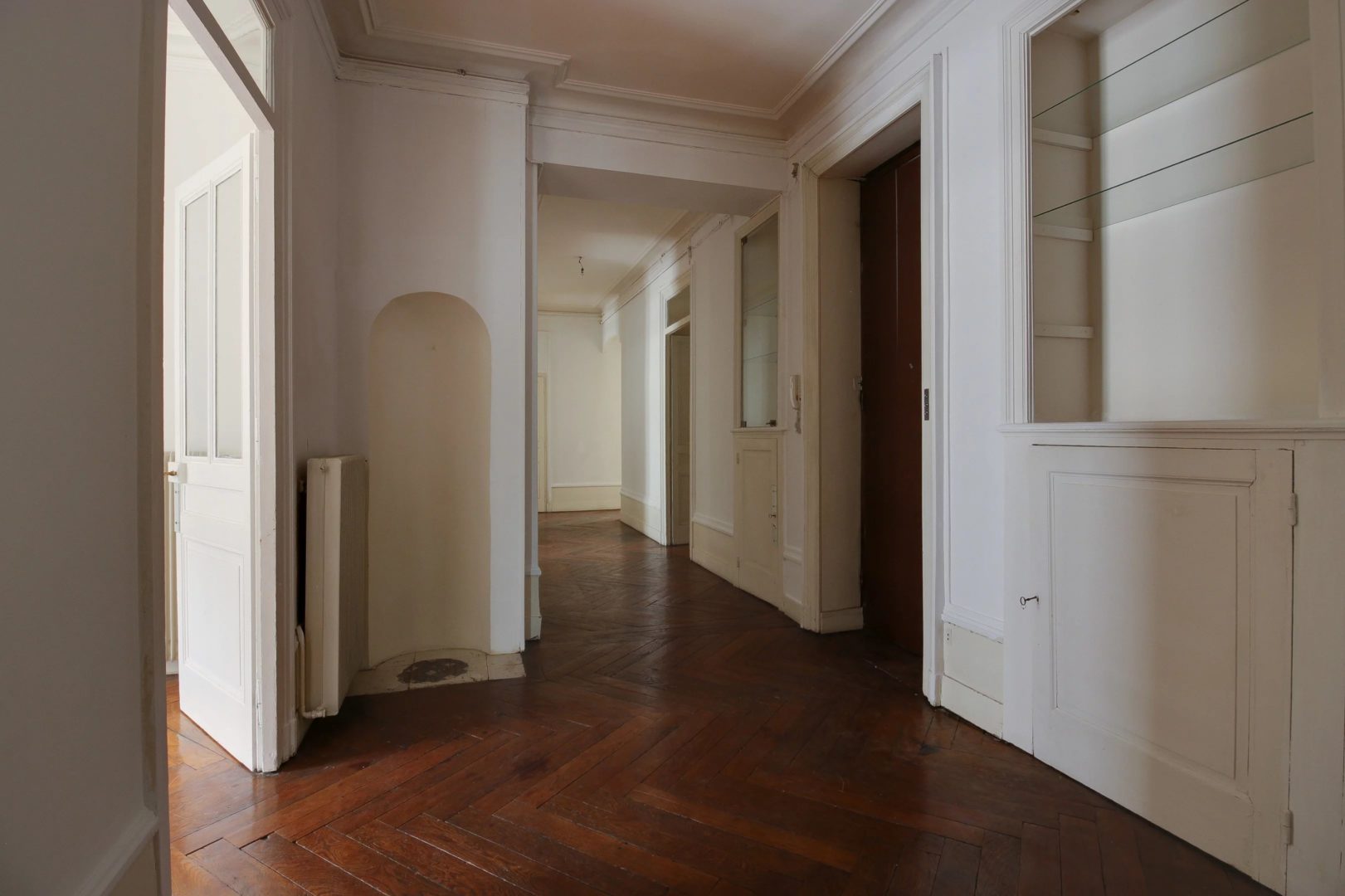 In a quiet street, in a beautiful building of Haussmanian type of very good standing, high floor with elevator, corner apartment of 142.87 m², noted for its large volumes and a beautiful light. A large entrance of 23 m² serves a double reception of 45 m² (the entrance could be open in this space), a separate kitchen (to renovate), a master bedroom of 22 m², bathroom. 3 rooms children and room of water, TOILET. Balcony spinning. Refreshment to predict. Ceiling height of more than 3 meters, parquet, beautiful moldings and fireplace. Fluid plan, brightness, large volumes. Calm. Charm of the old. Very nice address Lyons hyper-center in the area of the Basilica, quieter. Close to all shops, schools, transport, train station. A closed garage completes this property.